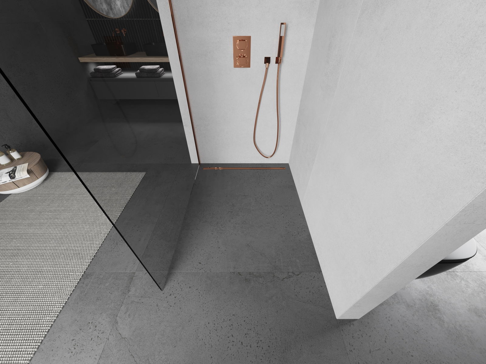 Mexen Kioto parede de chuveiro Walk-in 55 x 200 cm, transparente 8 mm, ouro rosa - 800-055-101-60-00