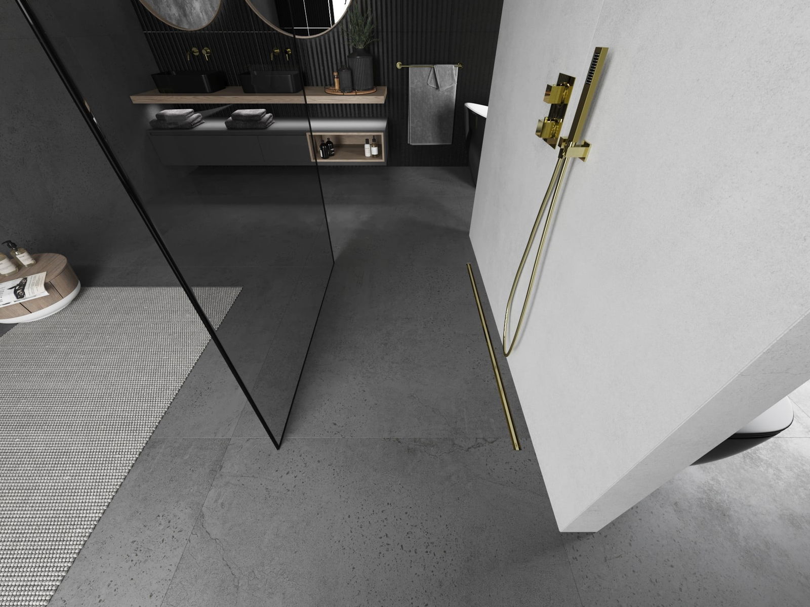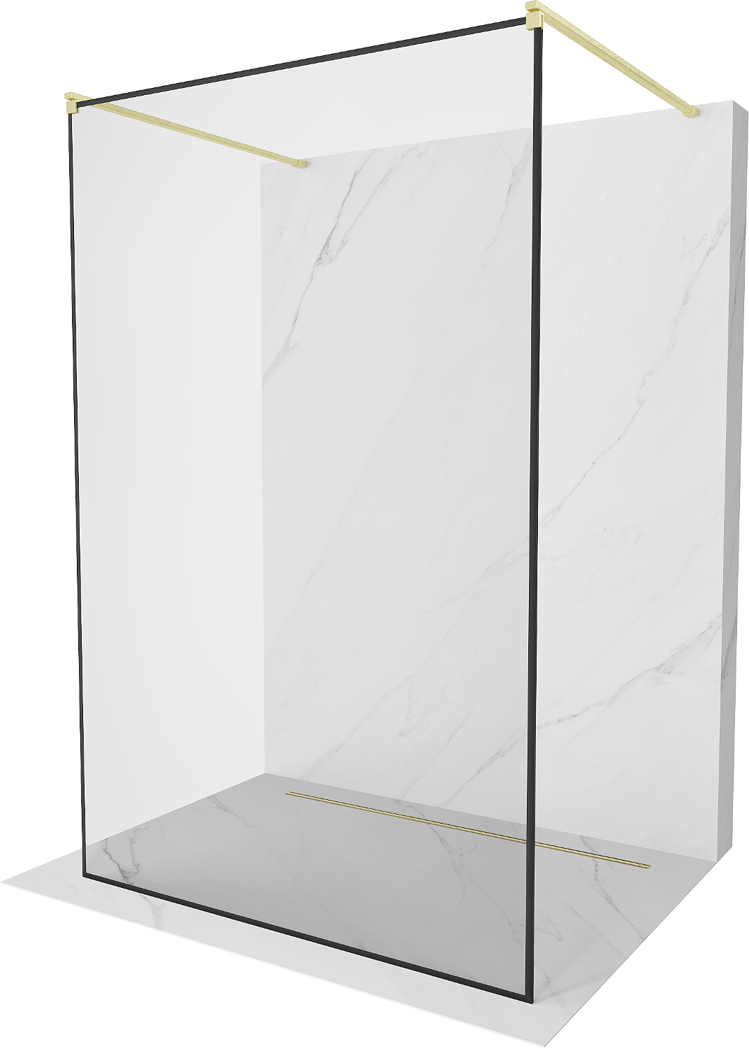 Mexen Kioto parede de chuveiro independente 130 x 200 cm, moldura preta 8 mm, dourada escovada - 800-130-002-55-70