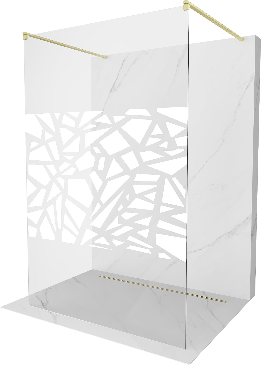 Mexen Kioto divisória de duche autónoma 140 x 200 cm, padrão branco 8 mm, dourado escovado - 800-140-002-55-85