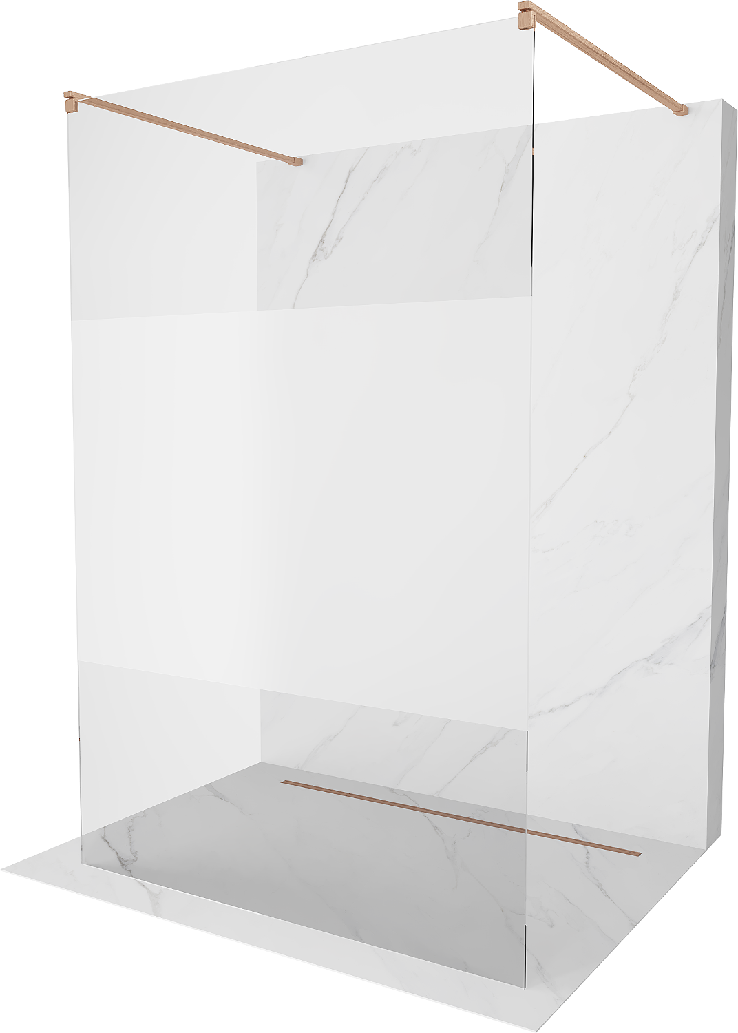 Mexen Kioto parede de chuveiro autoportante 130 x 200 cm, transparente/geada 8 mm, cobre escovado - 800-130-002-65-35