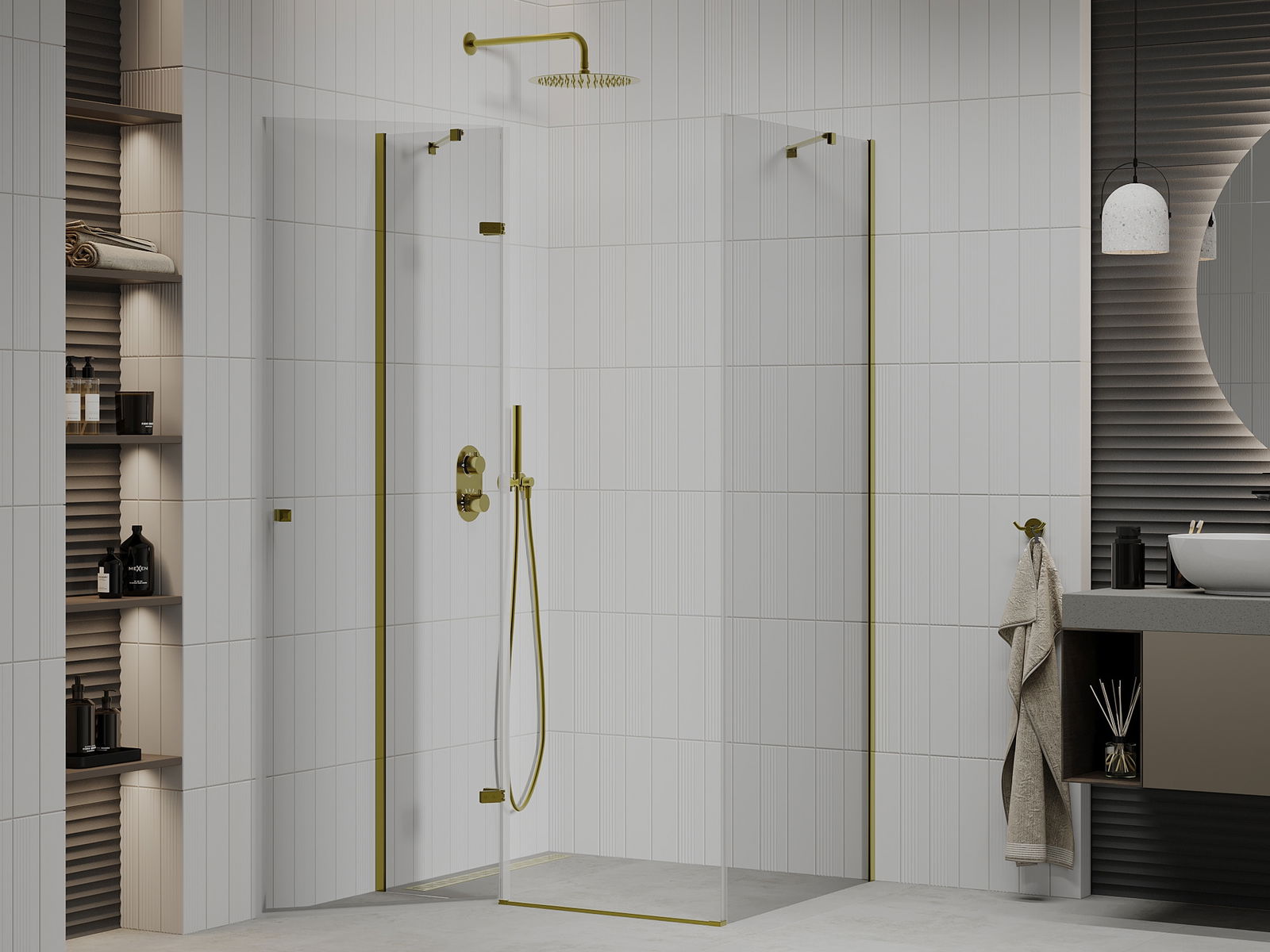 Mexen Roma cabine de duche com porta de abrir 80 x 90 cm, transparente, dourada - 854-080-090-50-00