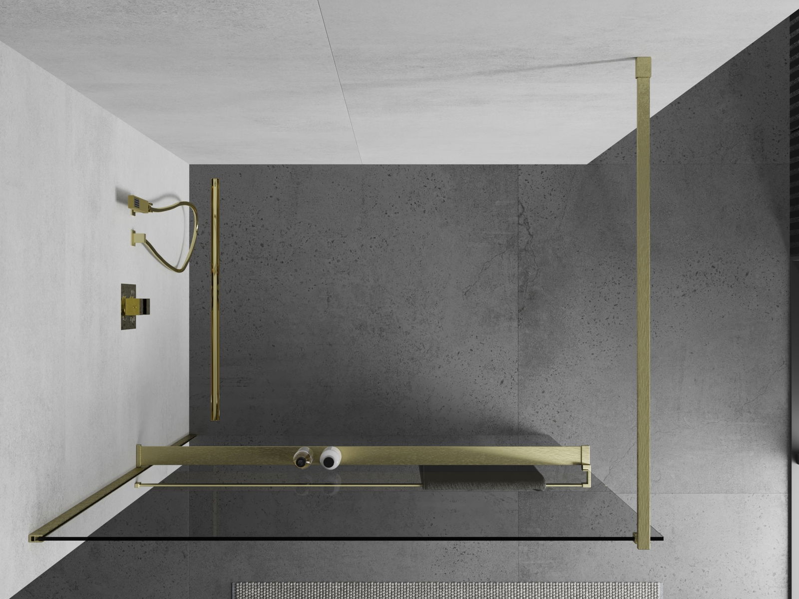 A prateleira para cosméticos foi feita de alumínio durável. O acabamento na cor dos restantes elementos de montagem faz com que a prateleira forme um conjunto elegante com outras partes do equipamento. Design moderno e solução conveniente em um só.