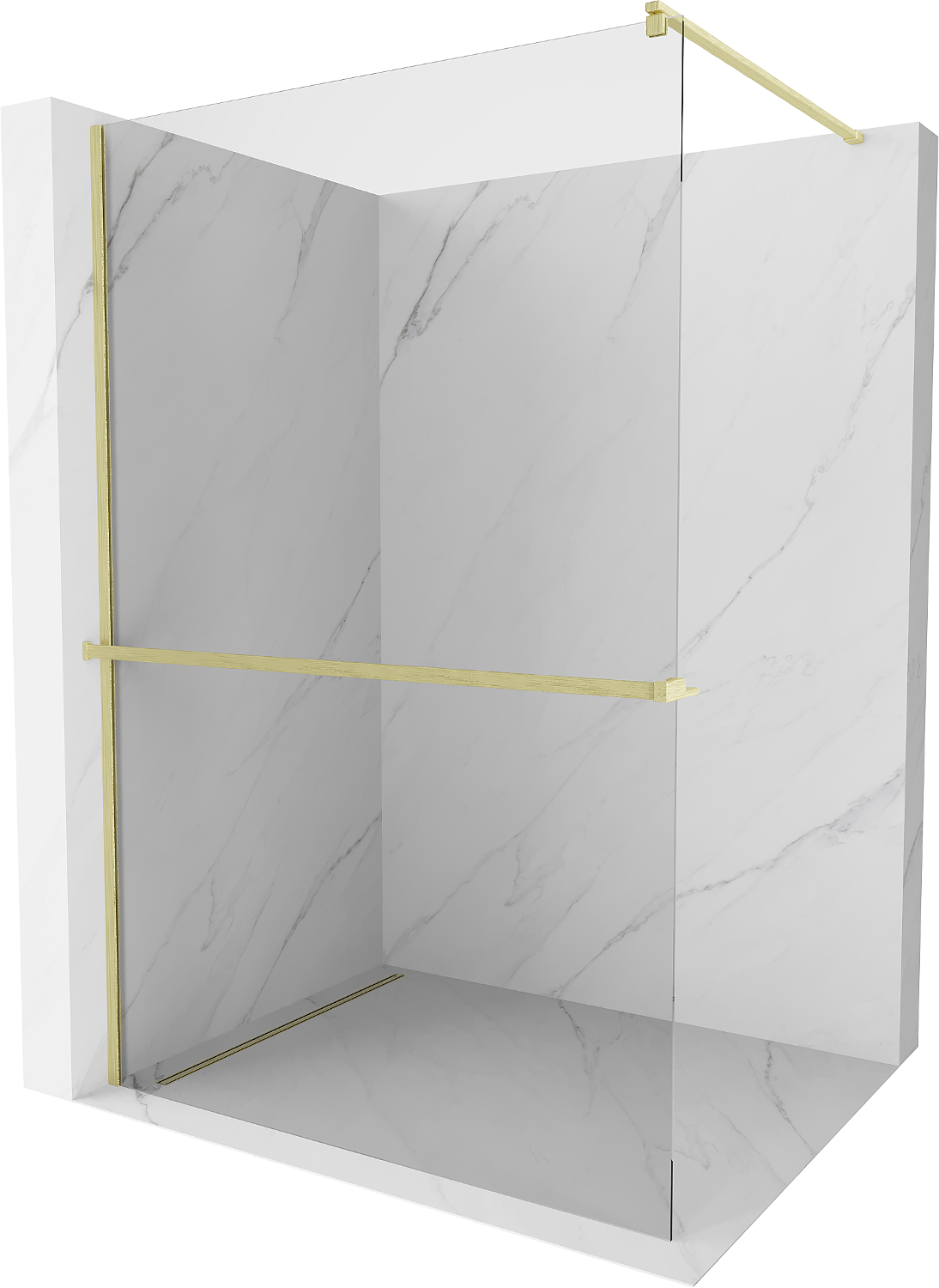 Mexen Kioto+ parede de duche com prateleira Walk-in 70 x 200 cm, transparente, dourado escovado - 800-070-121-55-00