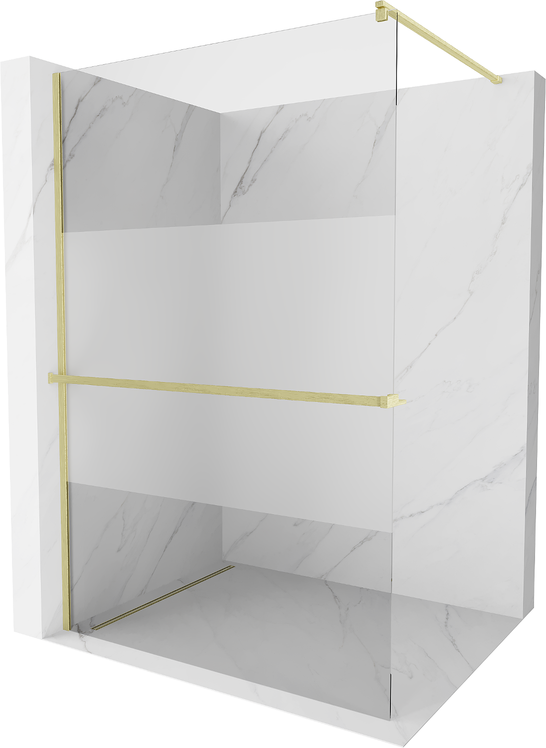 Mexen Kioto+ parede de duche com prateleira Walk-in 80 x 200 cm, transparente/fosco, dourado escovado - 800-080-121-55-35