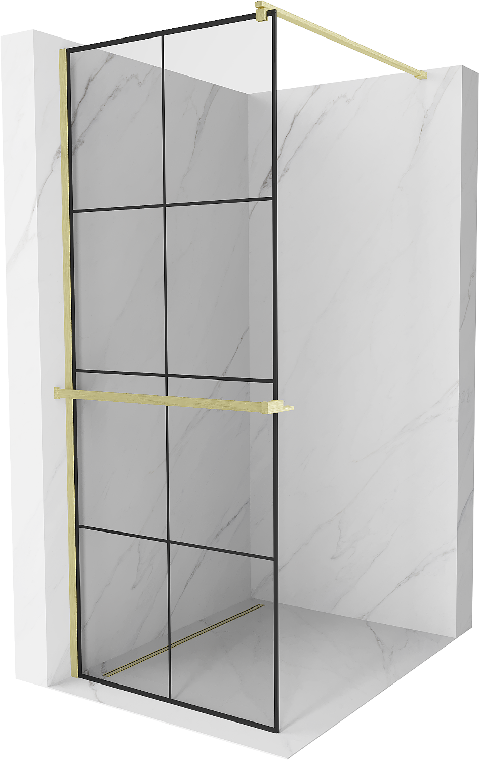 Mexen Kioto+ parede de duche com prateleira Walk-in 70 x 200 cm, grelha preta, dourada escovada - 800-070-121-55-77