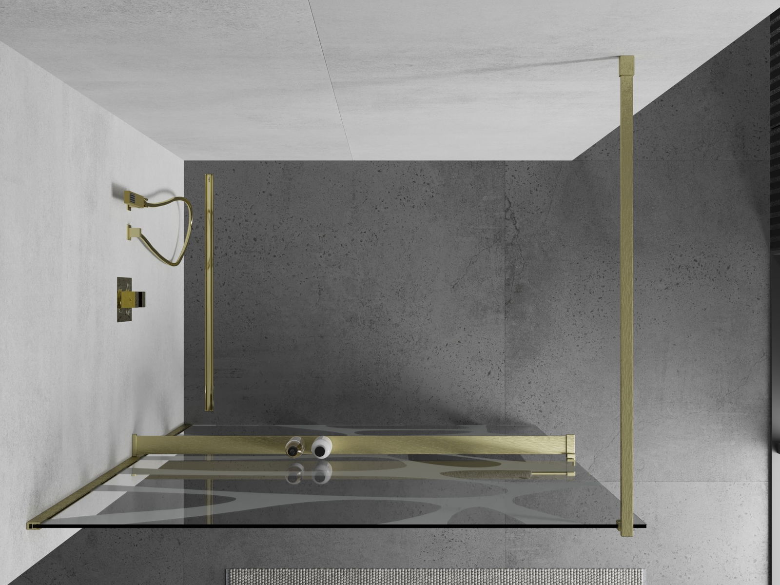 Mexen Kioto+ divisória de duche com prateleira Walk-in 140 x 200 cm, onda branca, dourado escovado - 800-140-121-55-97