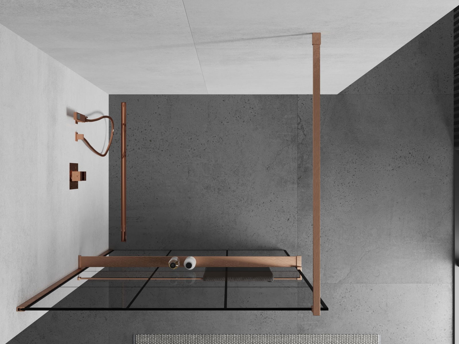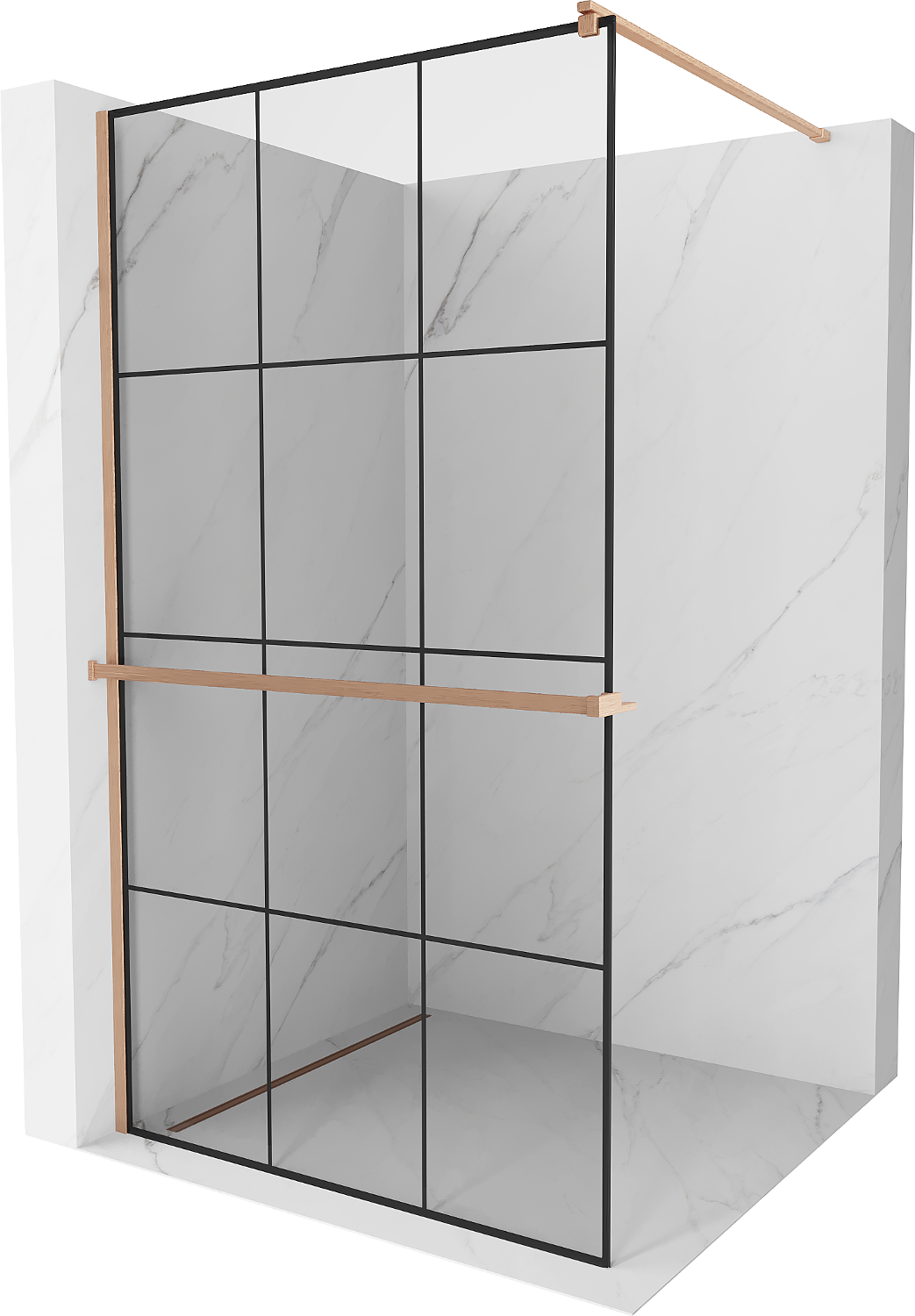 Mexen Kioto+ parede de duche com prateleira Walk-in 100 x 200 cm, grelha preta, cobre escovado - 800-100-121-65-77