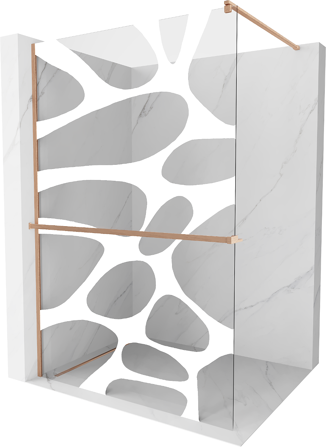 Mexen Kioto+ parede de duche com prateleira Walk-in 70 x 200 cm, onda branca, cobre escovado - 800-070-121-65-97