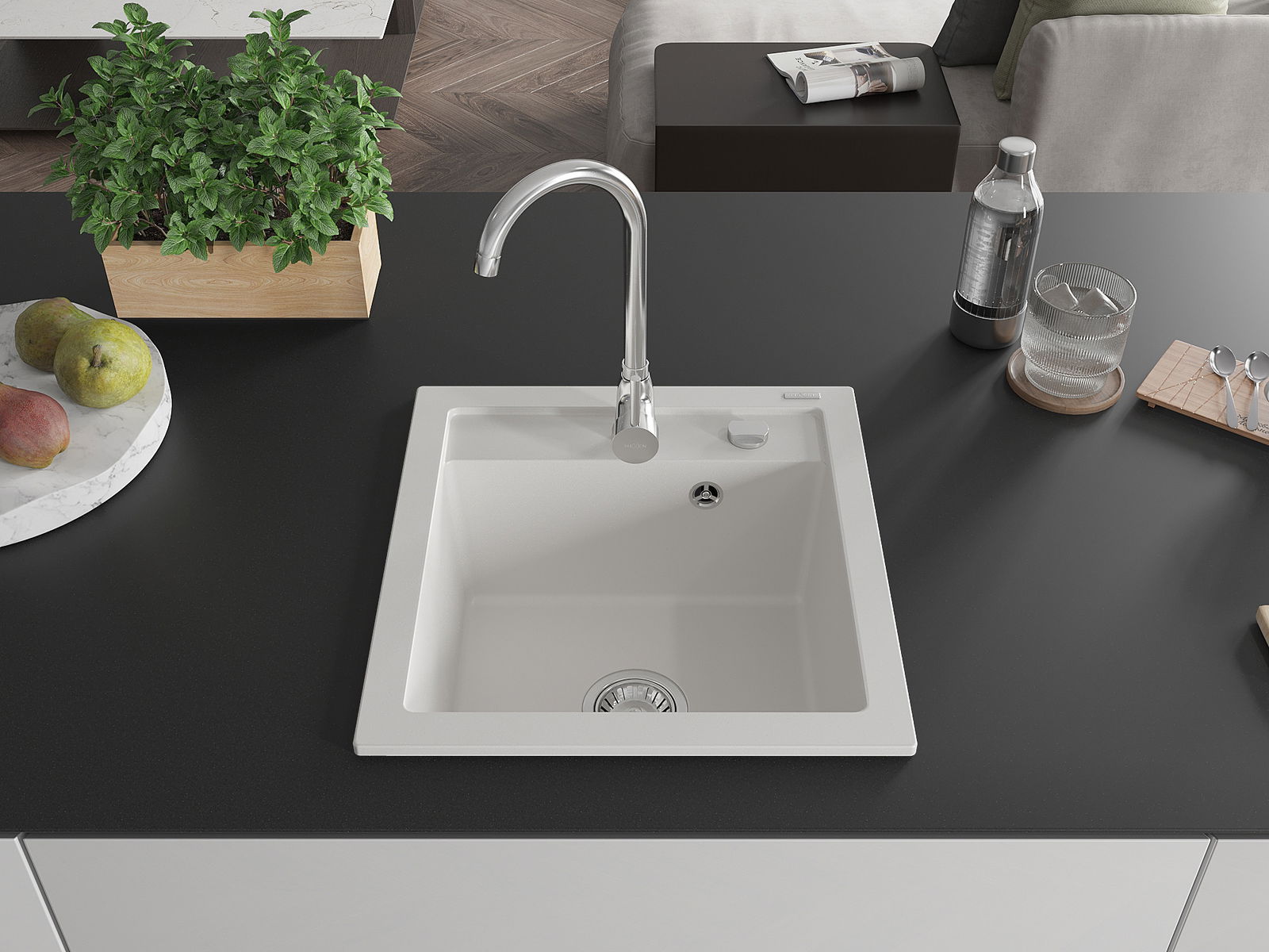 O lava-loiça é feito de granito de alta qualidade. Constitui um complemento elegante, e acima de tudo prático, para qualquer cozinha, independentemente do seu estilo. A alta qualidade e durabilidade do granito garantem muitos anos de utilização.