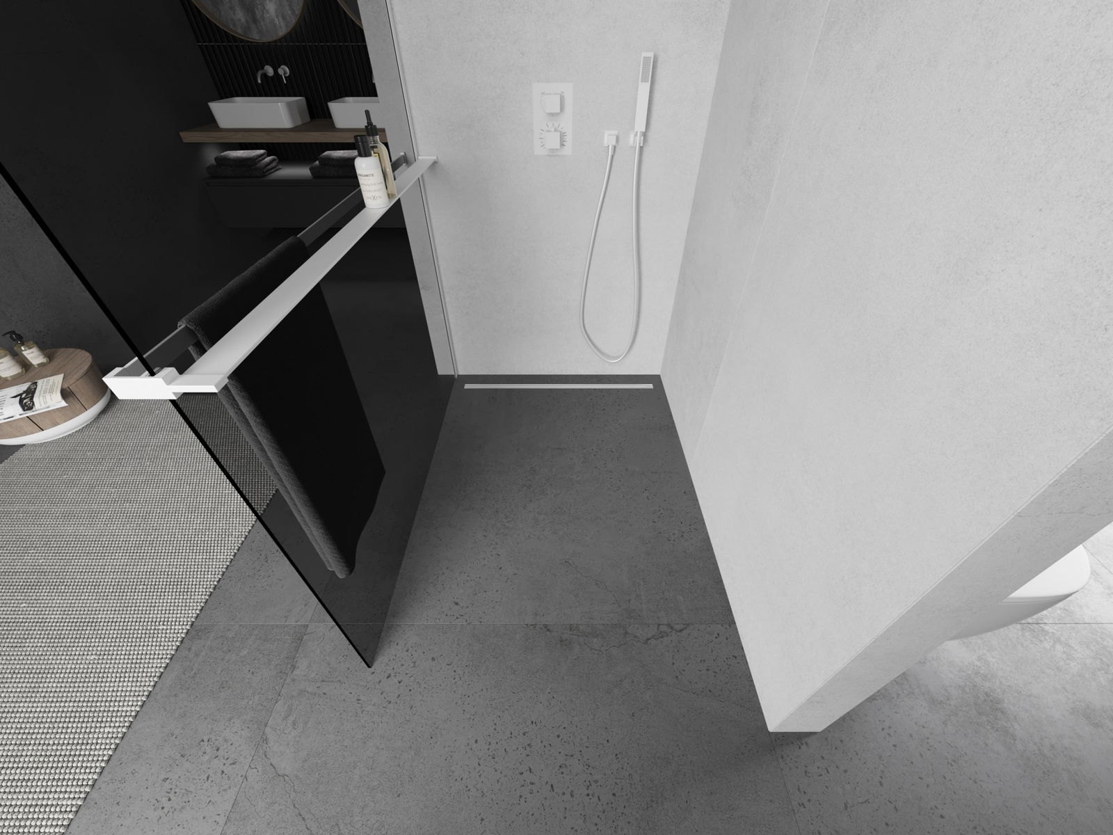Mexen Kioto+ parede de chuveiro com prateleira Walk-in 70 x 200 cm, grafite, branca - 800-070-121-20-40