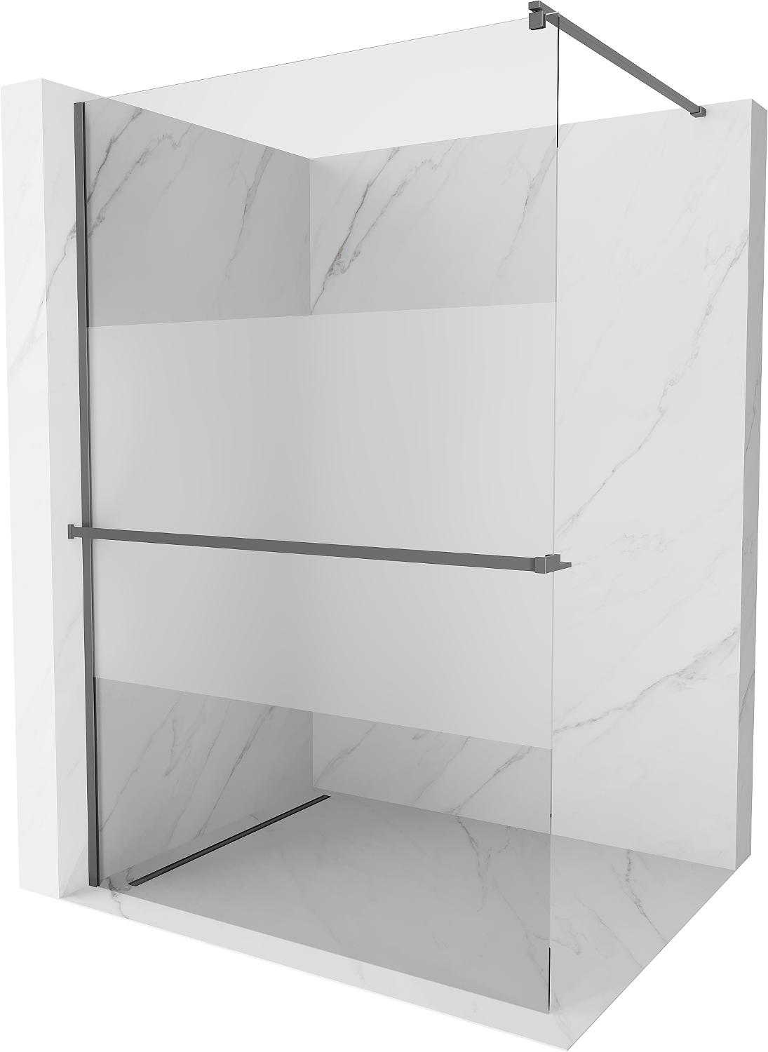 Mexen Kioto+ parede de duche com prateleira Walk-in 80 x 200 cm, transparente/fosco, metal canhão - 800-080-121-95-35