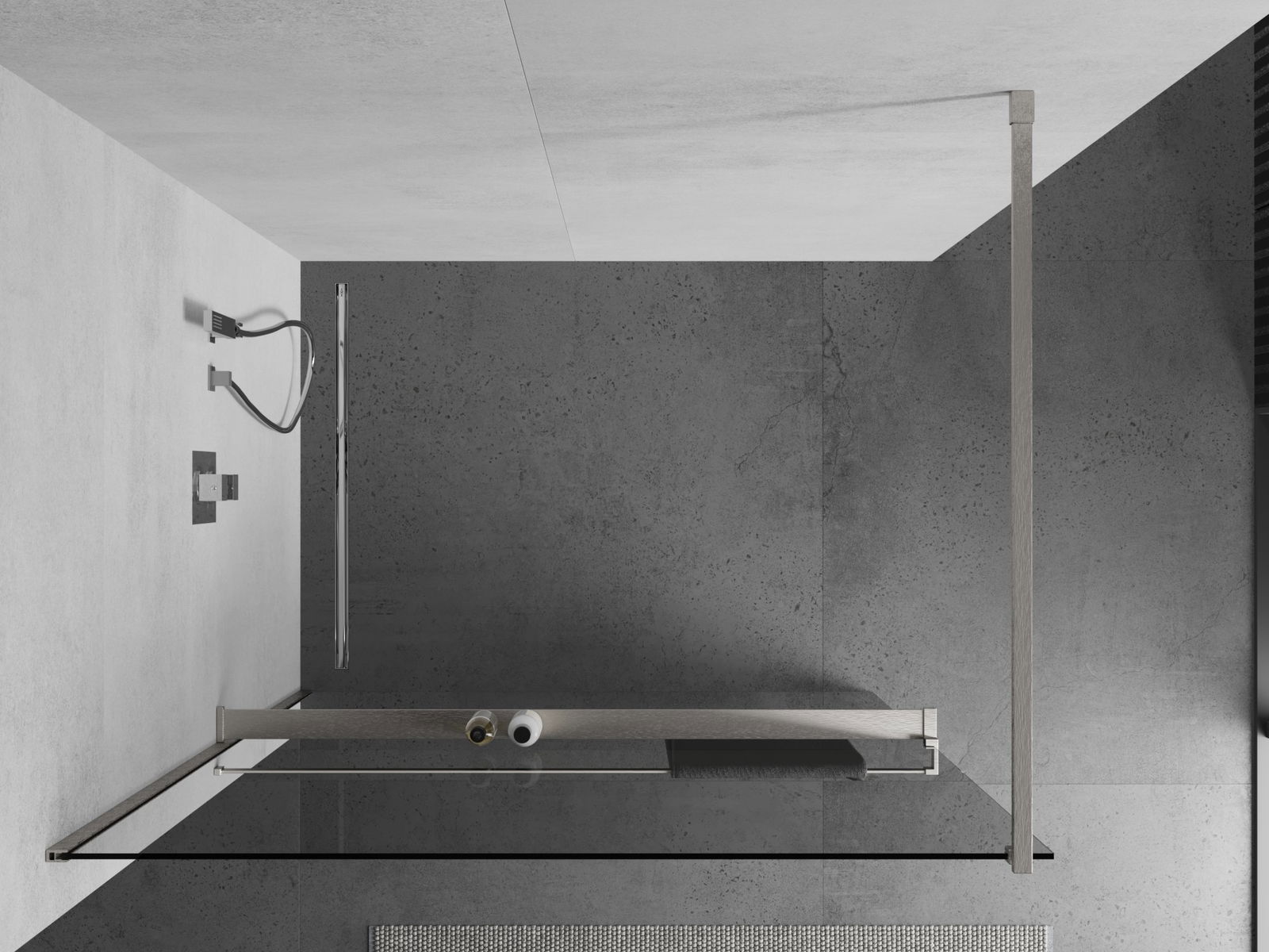 Mexen Kioto+ parede de duche com prateleira Walk-in 100 x 200 cm, transparente, níquel escovado - 800-100-121-97-00