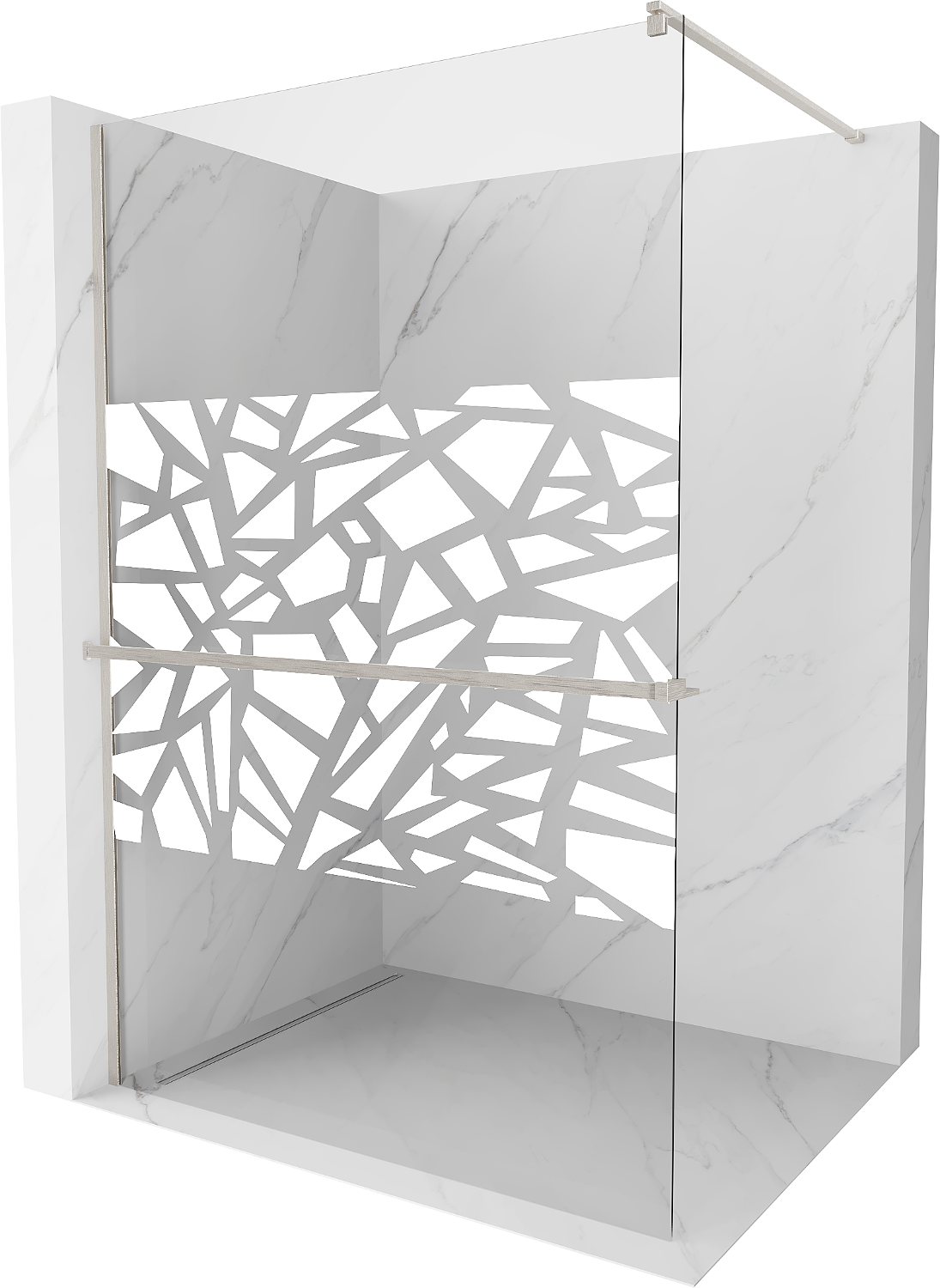 Mexen Kioto+ parede de duche com prateleira Walk-in 110 x 200 cm, padrão branco, níquel escovado - 800-110-121-97-85