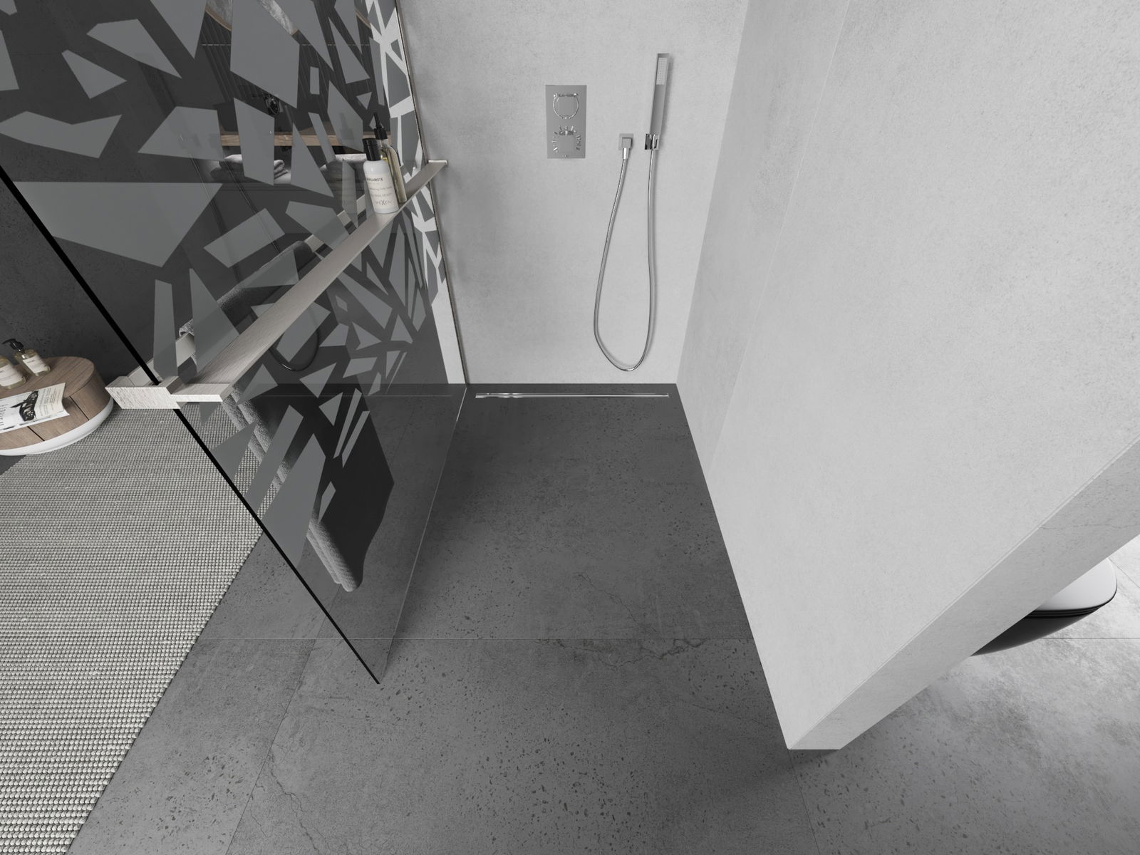 O produto, dependendo das necessidades, pode ser montado tanto no chuveiro como diretamente no chão. O método de montagem universal permite adaptar o produto a diferentes tipos de casas de banho e configurações de espaço.