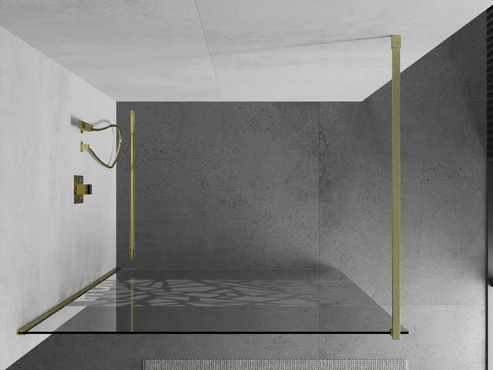 Mexen Kioto parede de duche Walk-in 130 x 200 cm, padrão branco 8 mm, ouro escovado - 800-130-101-55-85