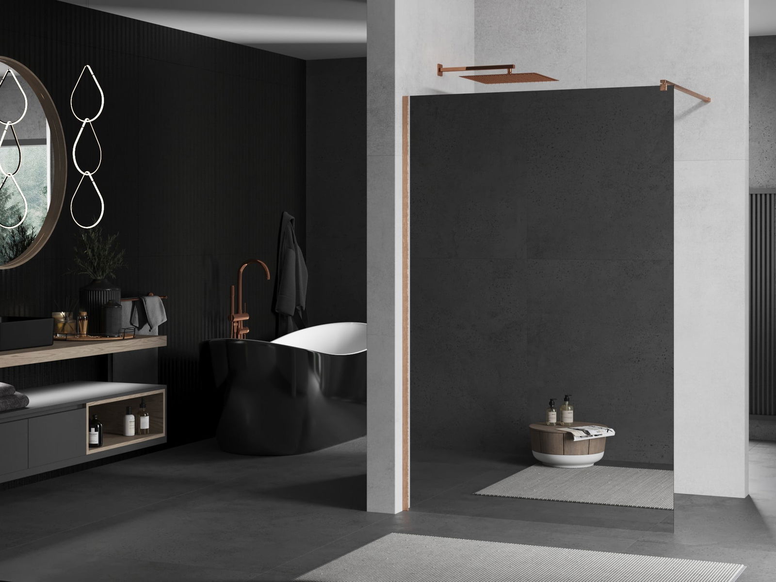 Mexen Kioto painel de duche Walk-in 120 x 200 cm, espelho 8 mm, cobre escovado - 800-120-101-65-50