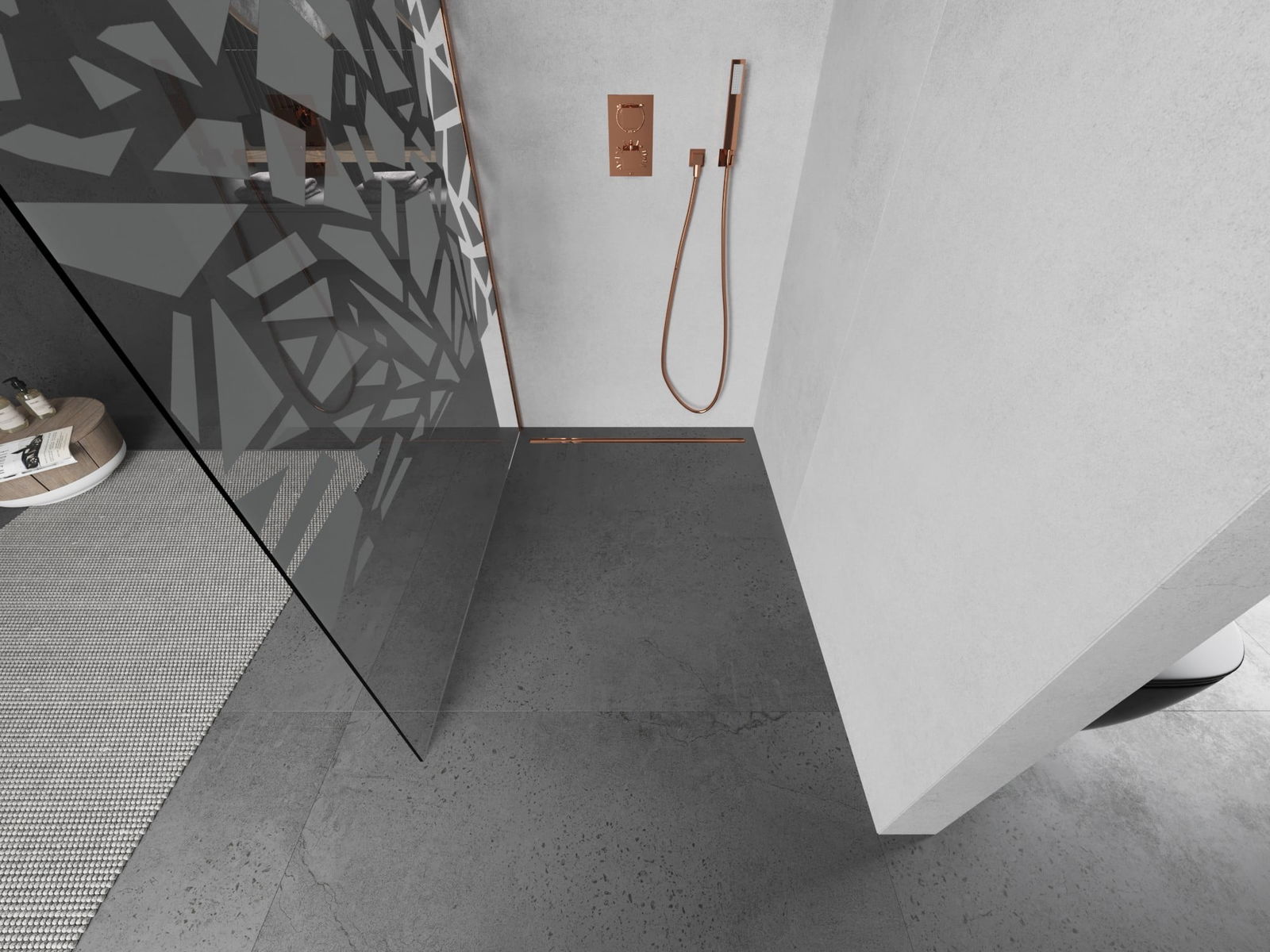 Mexen Kioto parede de chuveiro walk-in 100 x 200 cm, padrão branco 8 mm, cobre escovado - 800-100-101-65-85