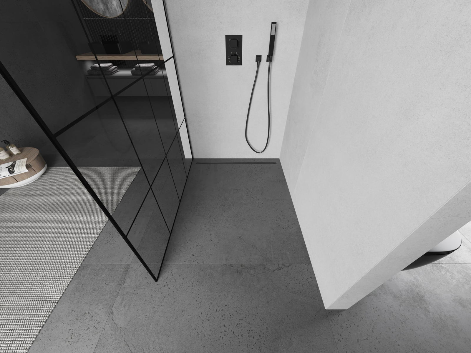 O produto, dependendo das necessidades, pode ser montado tanto no chuveiro como diretamente no chão. O método de montagem universal permite adaptar o produto a diferentes tipos de casas de banho e configurações de espaço.