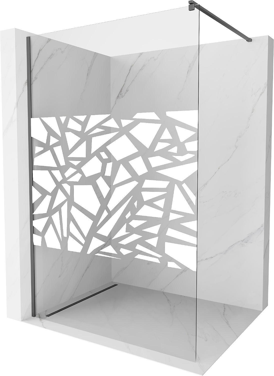Mexen Kioto parede de duche Walk-in 90 x 200 cm, padrão branco 8 mm, metal escovado - 800-090-101-95-85
