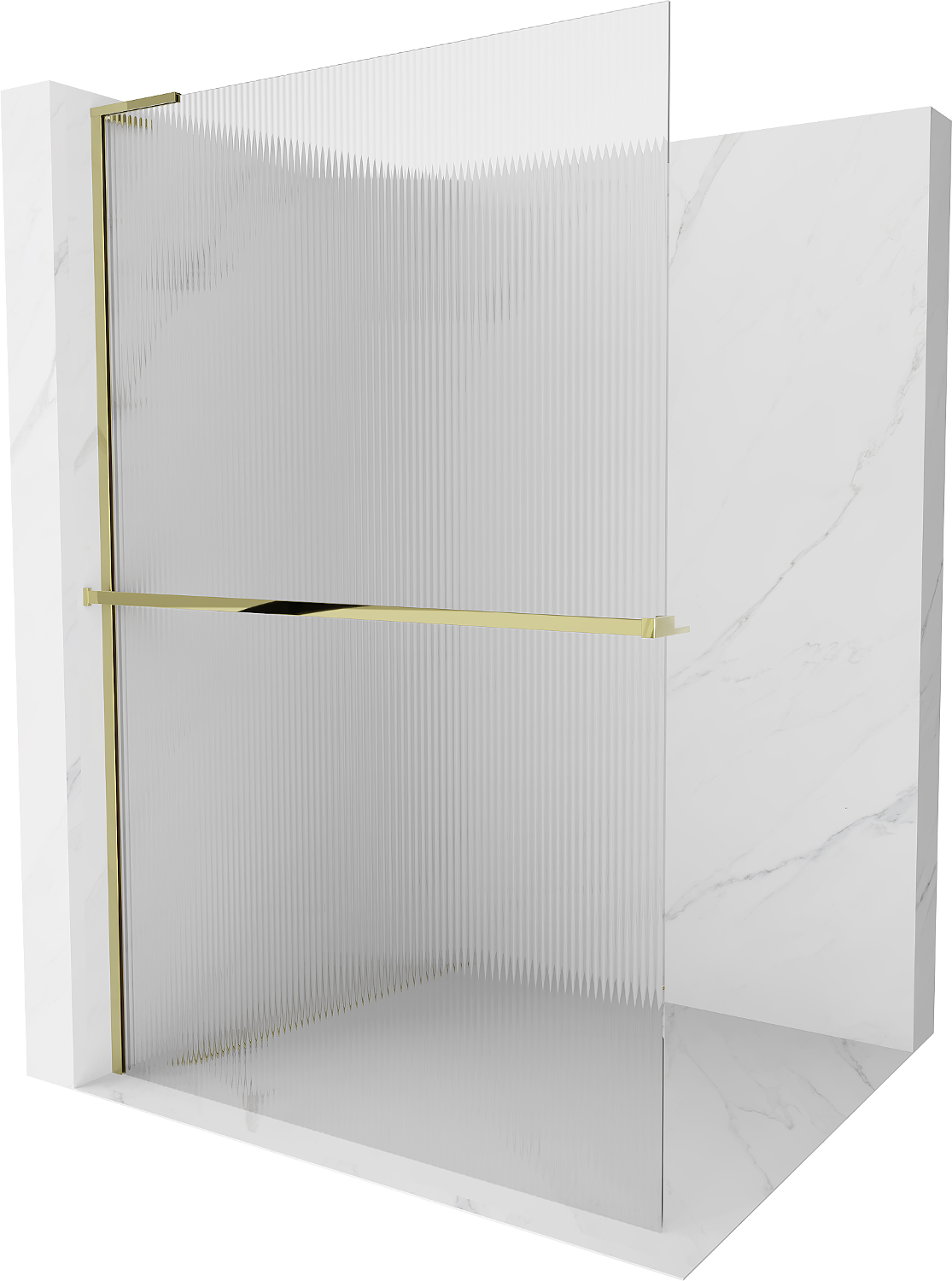 Mexen Kioto+ L parede de duche com prateleira Walk-in 100 x 200 cm, riscas, dourada - 800-100-123-50-09