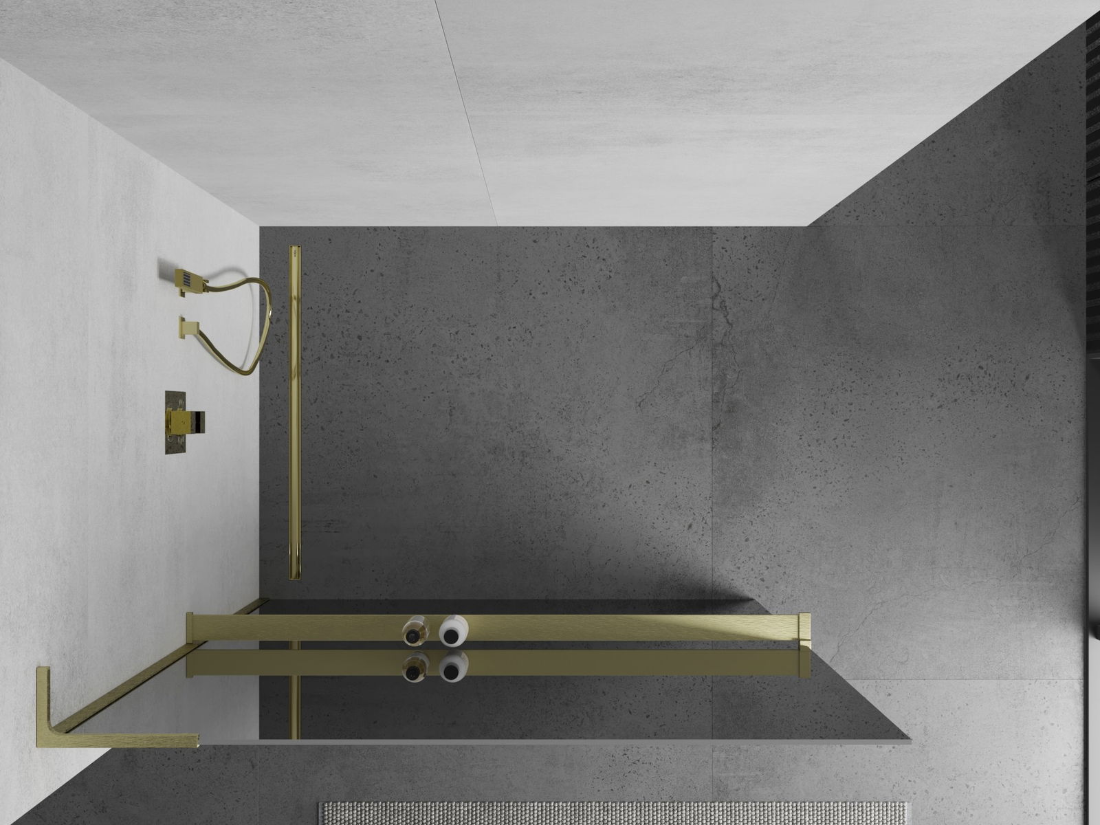 A prateleira para cosméticos foi feita de alumínio durável. O acabamento na cor dos restantes elementos de montagem faz com que a prateleira forme um conjunto elegante com outras partes do equipamento. Design moderno e solução conveniente em um só.