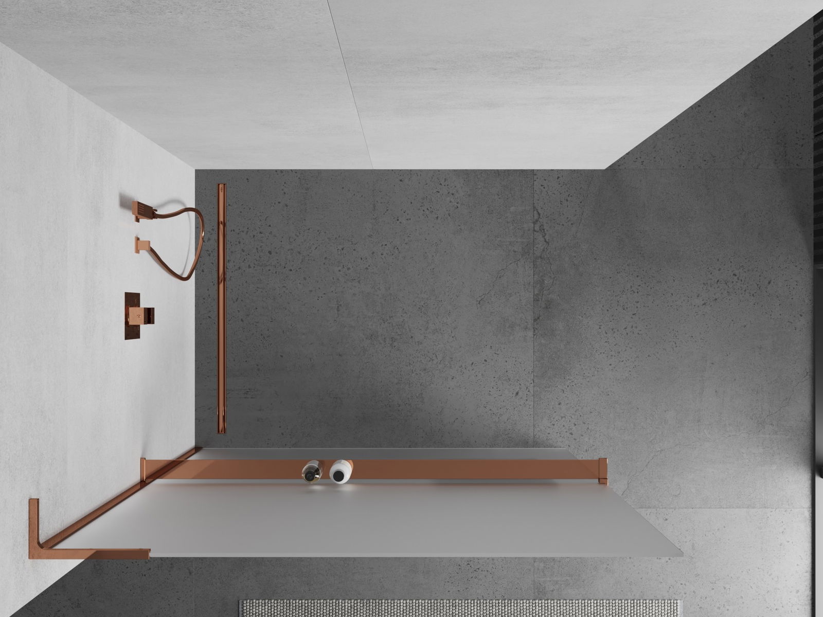 A prateleira para cosméticos foi feita de alumínio durável. O acabamento na cor dos restantes elementos de montagem faz com que a prateleira forme um conjunto elegante com outras partes do equipamento. Design moderno e solução conveniente em um só.
