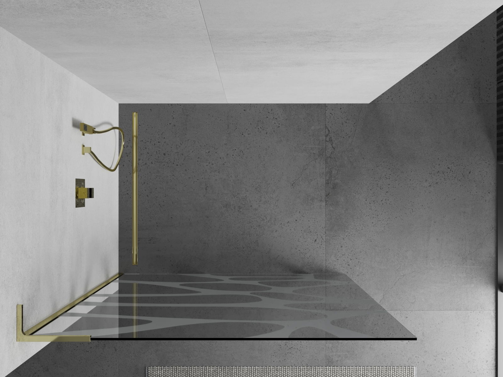 Mexen Kioto L parede de duche Walk-in 70 x 200 cm, onda branca, dourada - 800-070-103-50-97