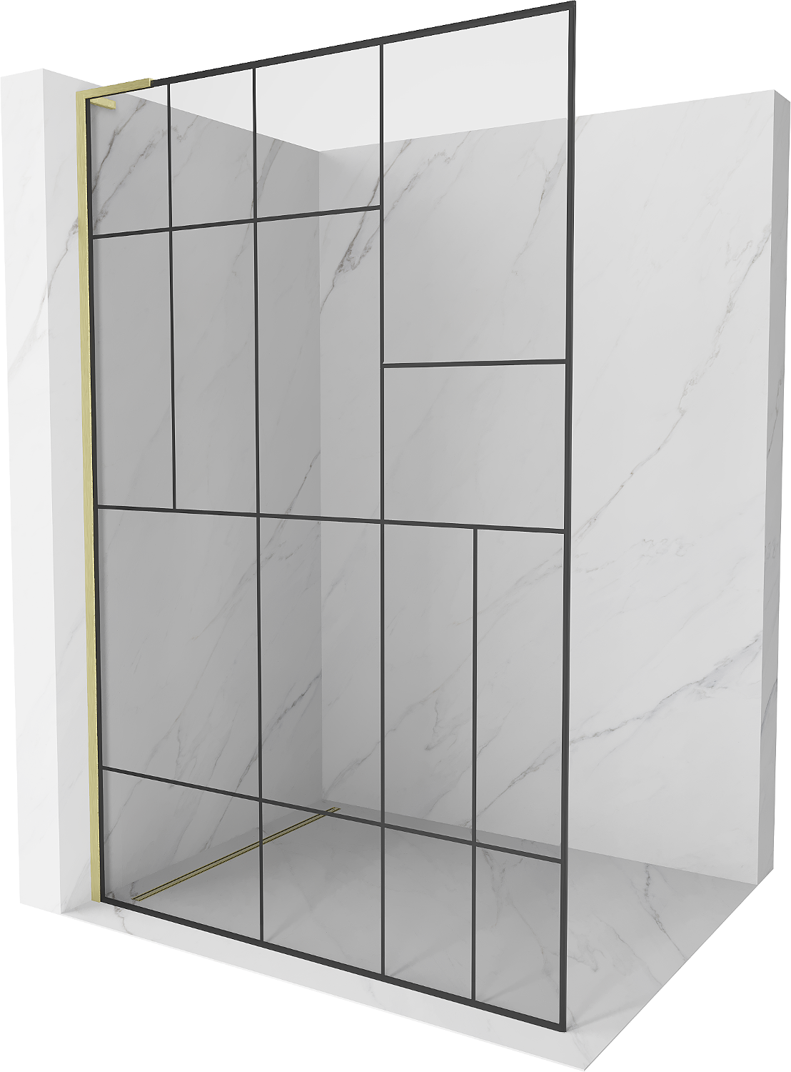 Mexen Kioto L parede de duche Walk-in 110 x 200 cm, padrão preto, dourado escovado - 800-110-103-55-78