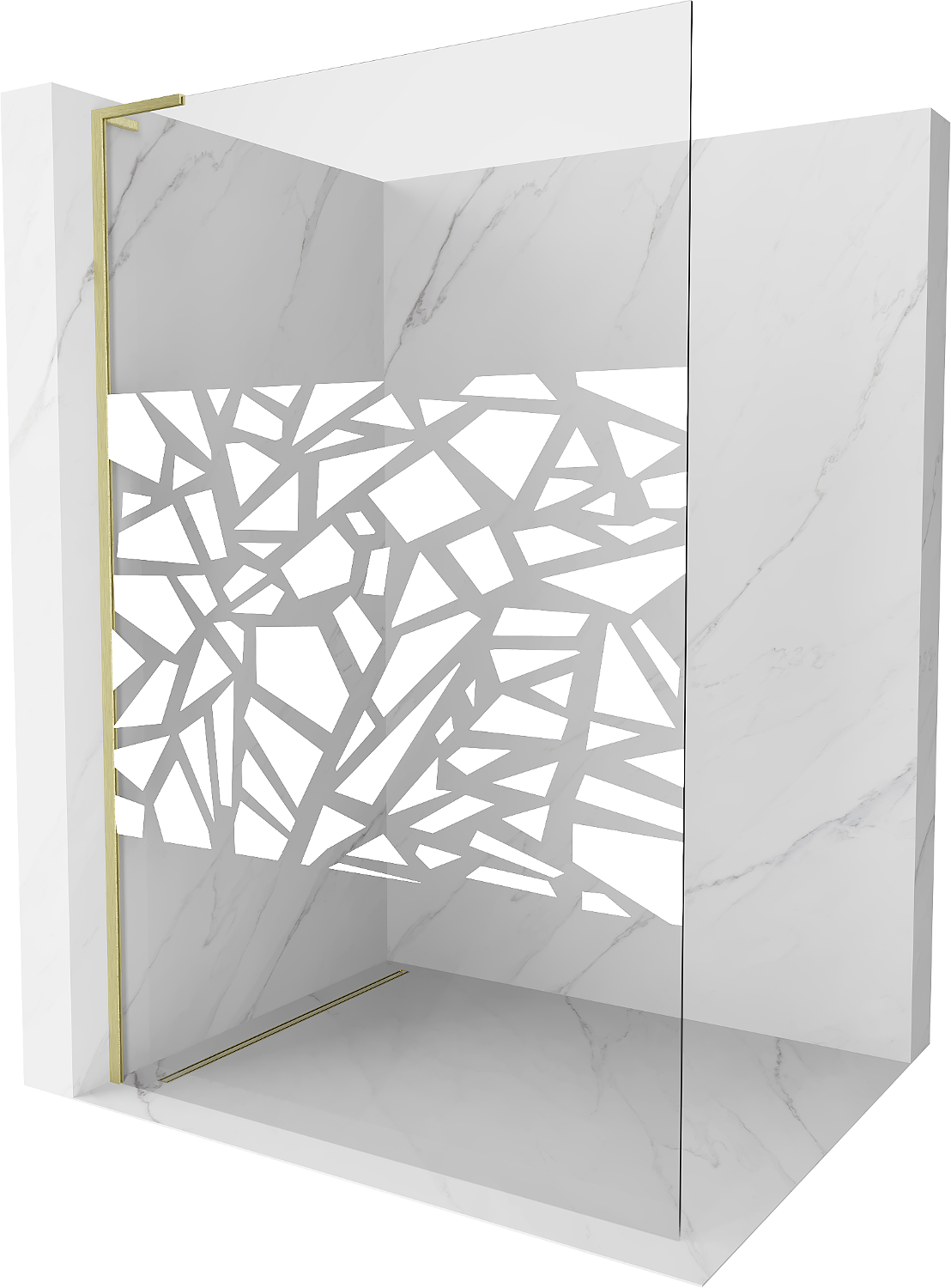 Mexen Kioto L parede de chuveiro Walk-in 110 x 200 cm, padrão branco, dourado escovado - 800-110-103-55-85