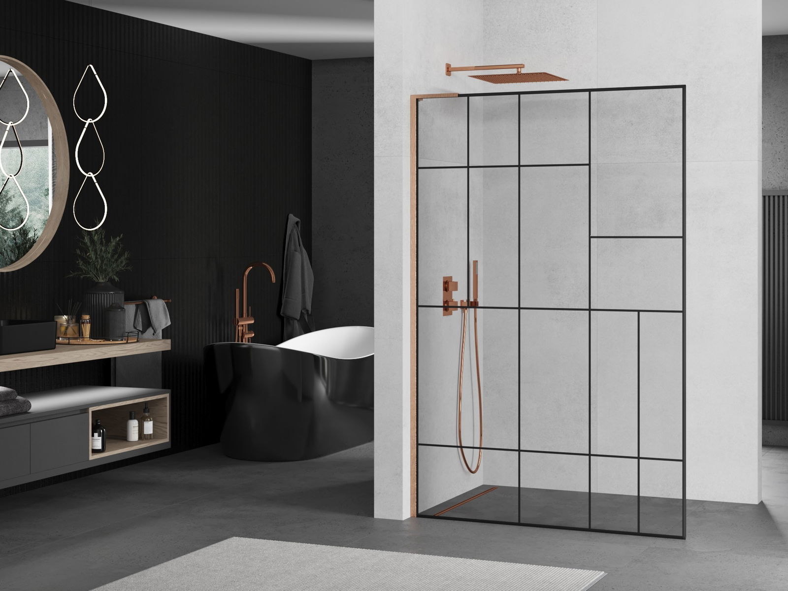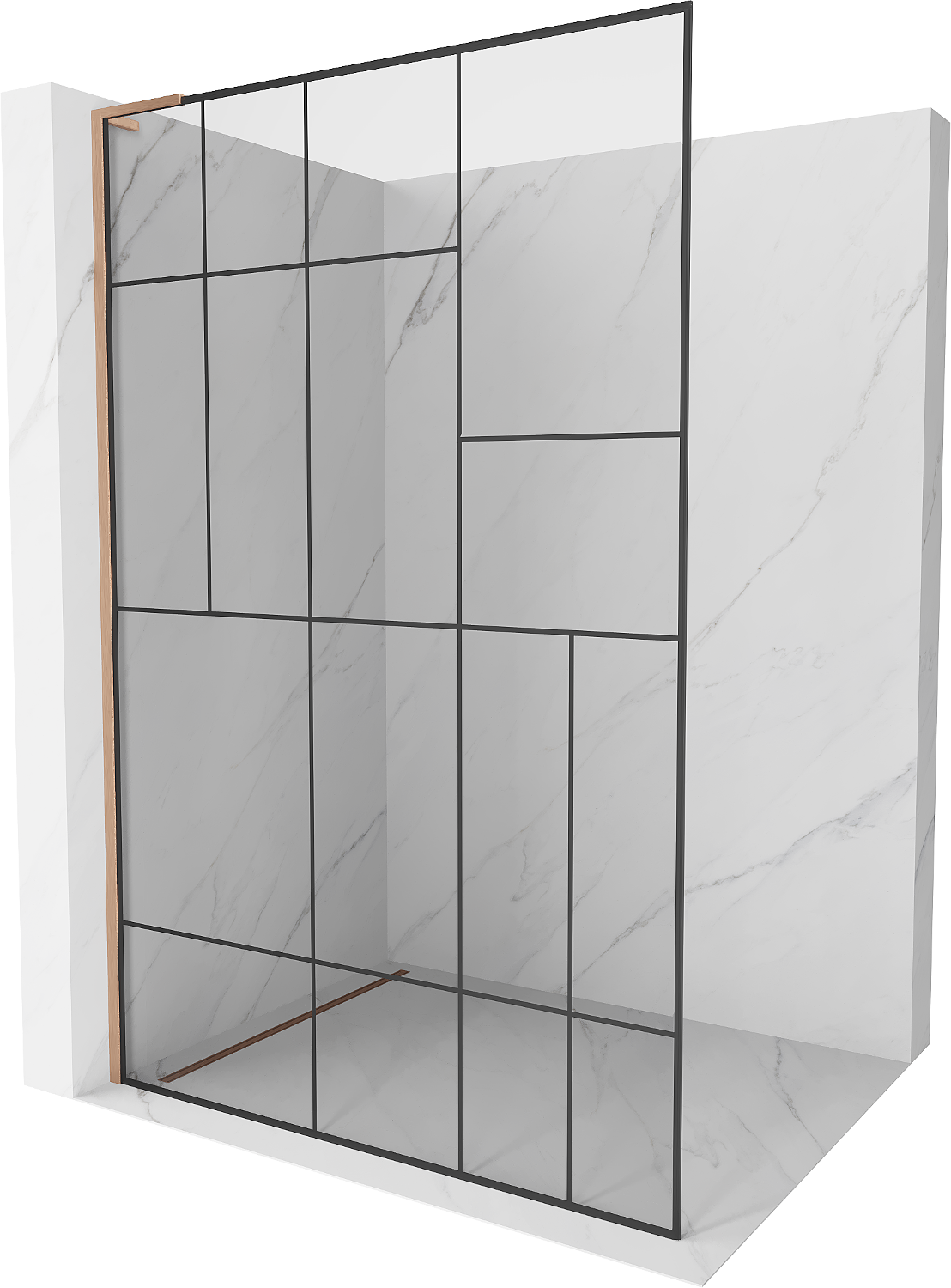 Mexen Kioto L parede de duche Walk-in 120 x 200 cm, padrão preto, cobre escovado - 800-120-103-65-78