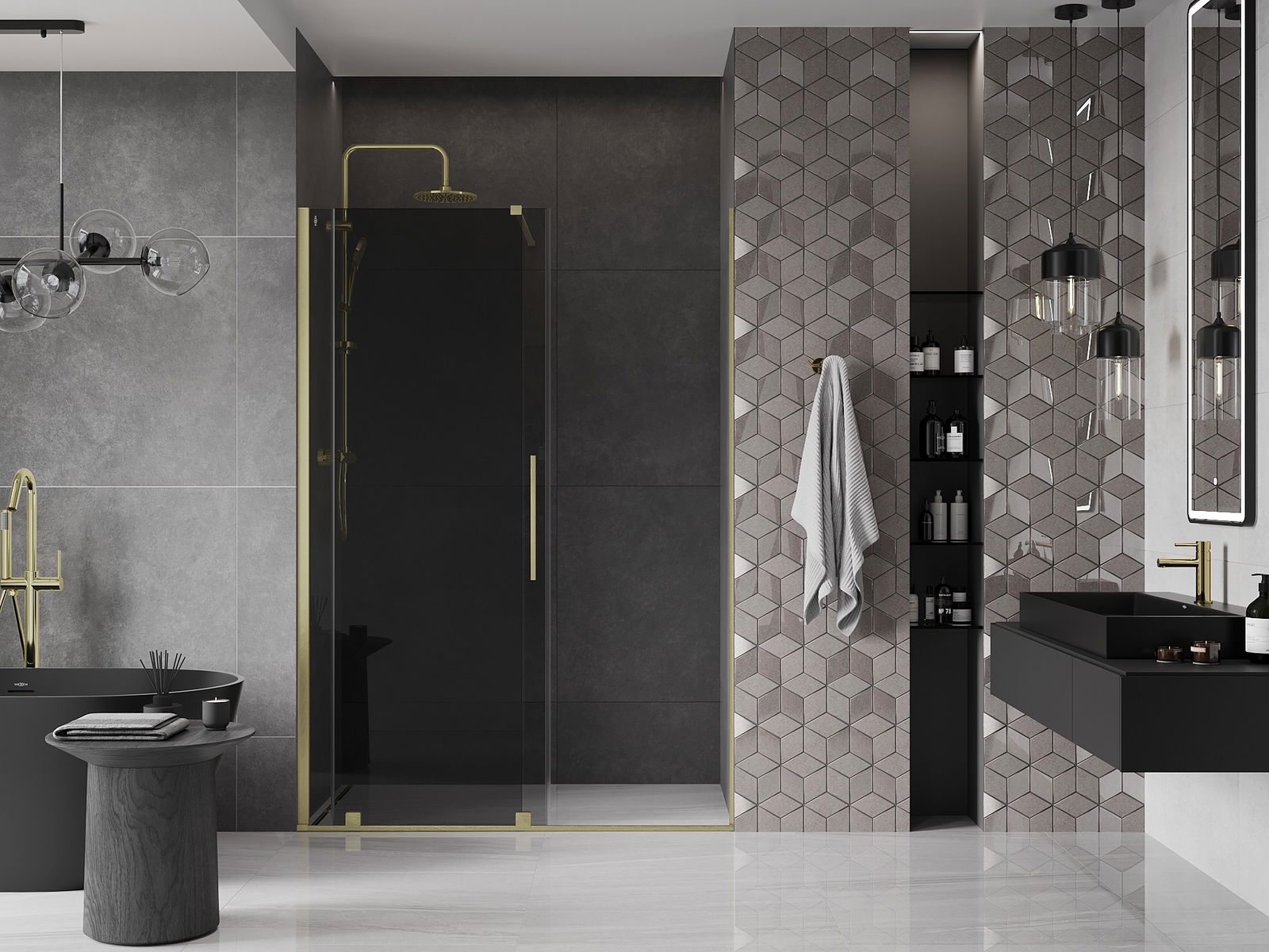 Mexen Velar portas de duche deslizantes 130 cm, grafite, dourado escovado - 871-130-000-41-55