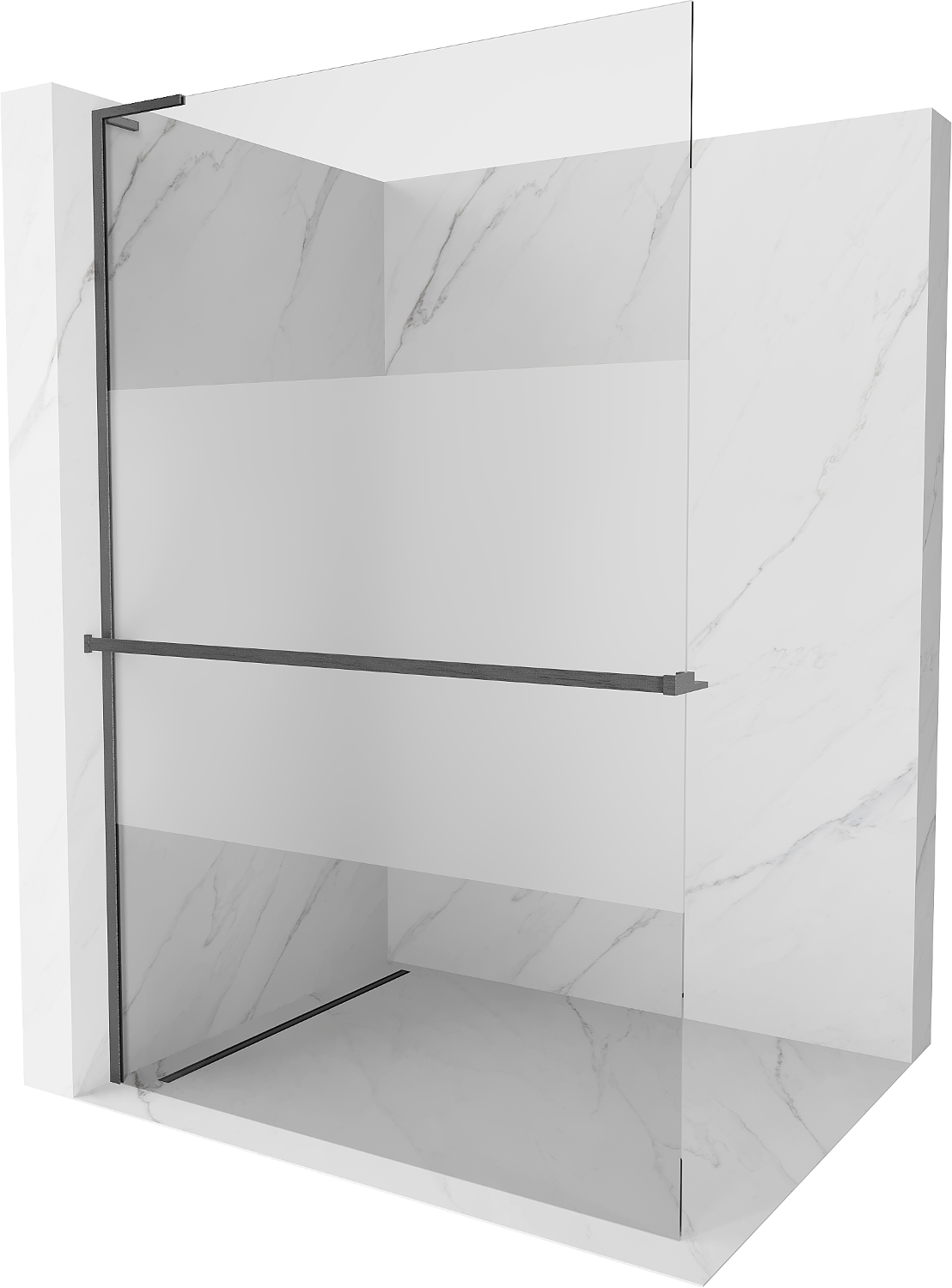 Mexen Kioto+ L parede de duche com prateleira Walk-in 110 x 200 cm, transparente/fosco, cinzento metalizado escovado