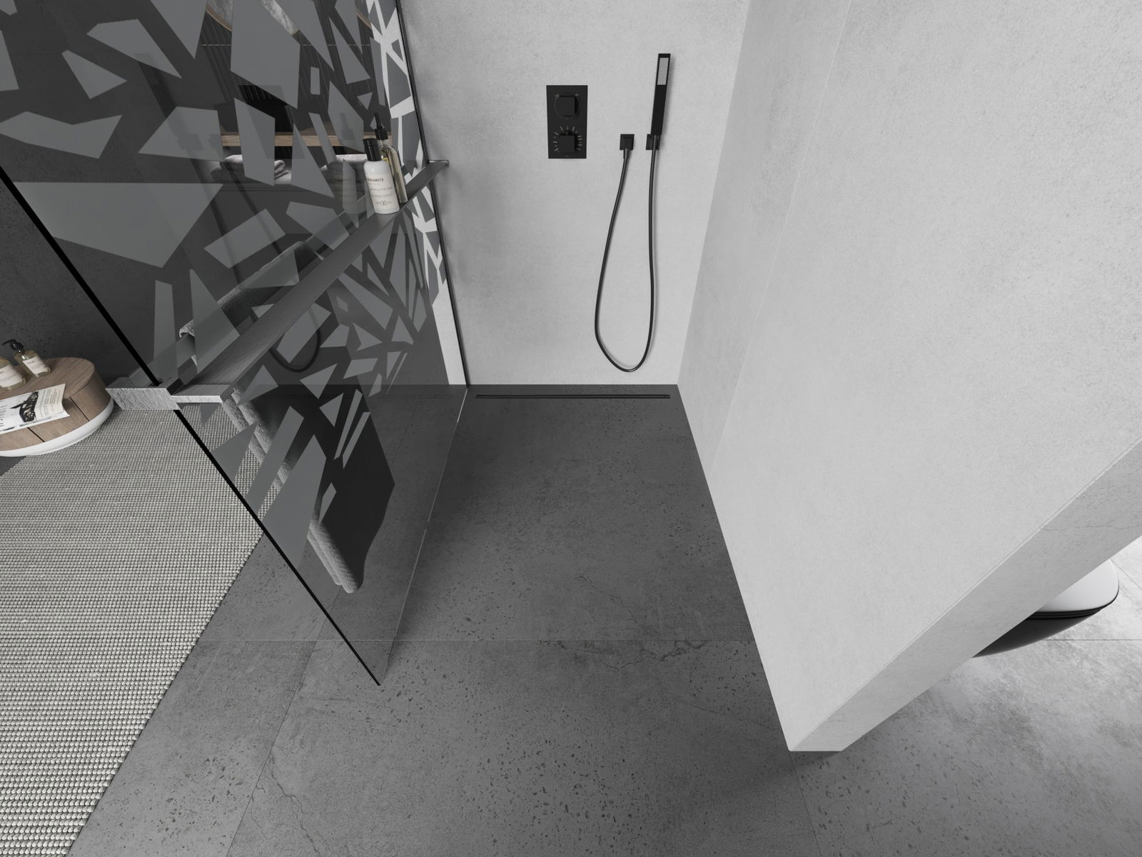 Mexen Kioto+ L divisória de duche com prateleira Walk-in 70 x 200 cm, padrão branco, cinza aço escovado - 800-070-123-66-85