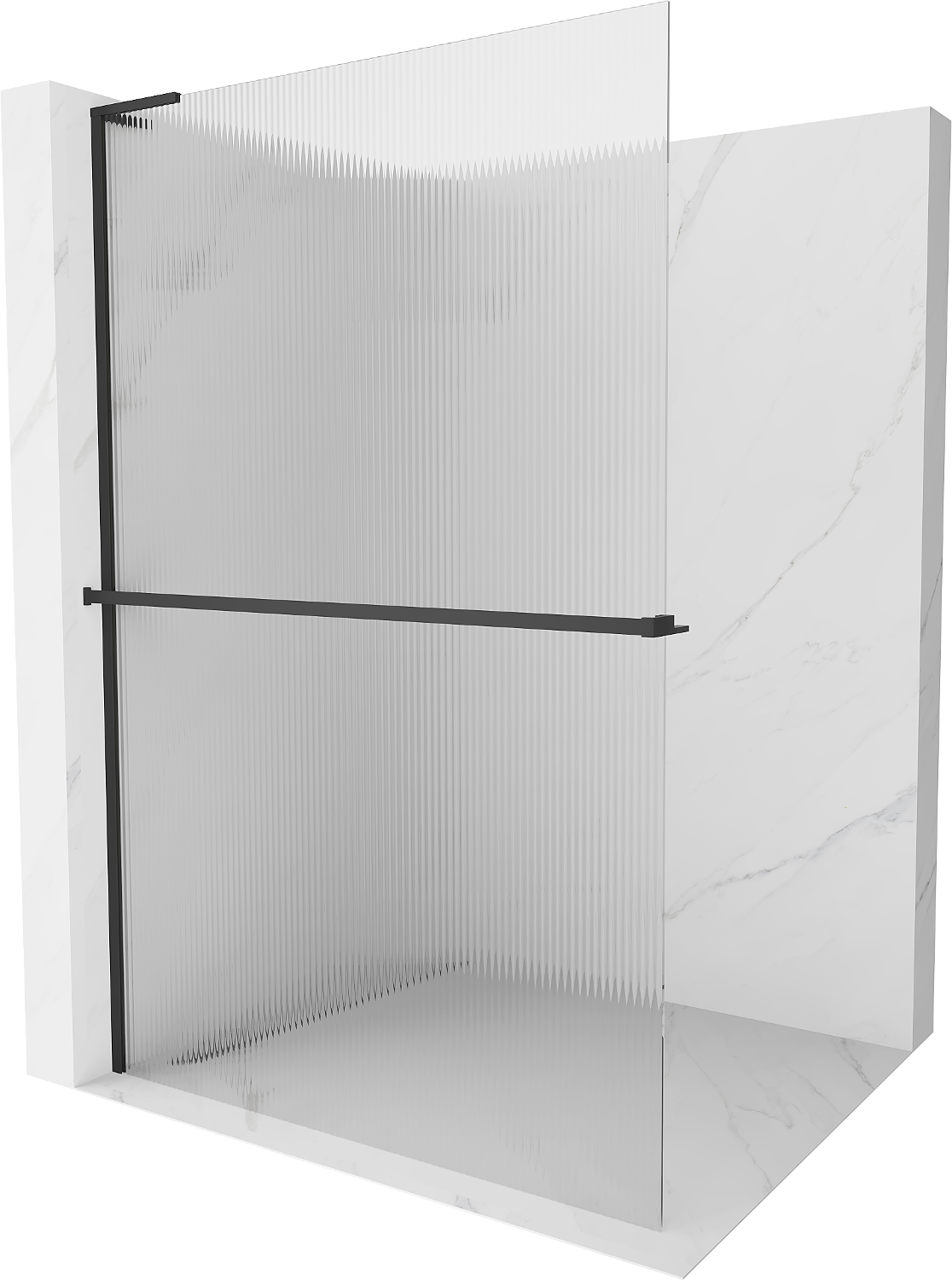 Mexen Kioto+ L parede de chuveiro com prateleira Walk-in 80 x 200 cm, listras, preta - 800-080-123-70-09