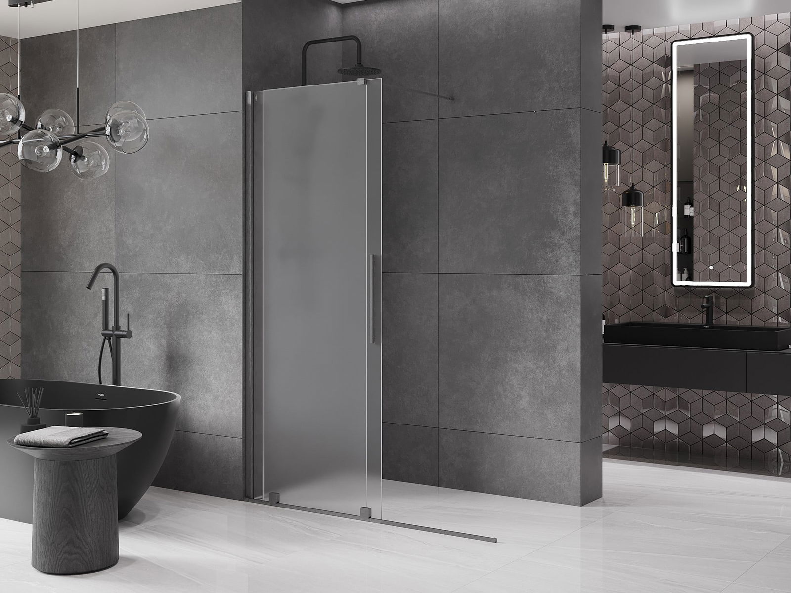 Pega prática e confortável feita de aço inoxidável. A forma moderna, combinada com o acabamento adaptado à cor dos perfis, dá ao conjunto uma aparência moderna e estilosa, realçando a estética de qualquer casa de banho.