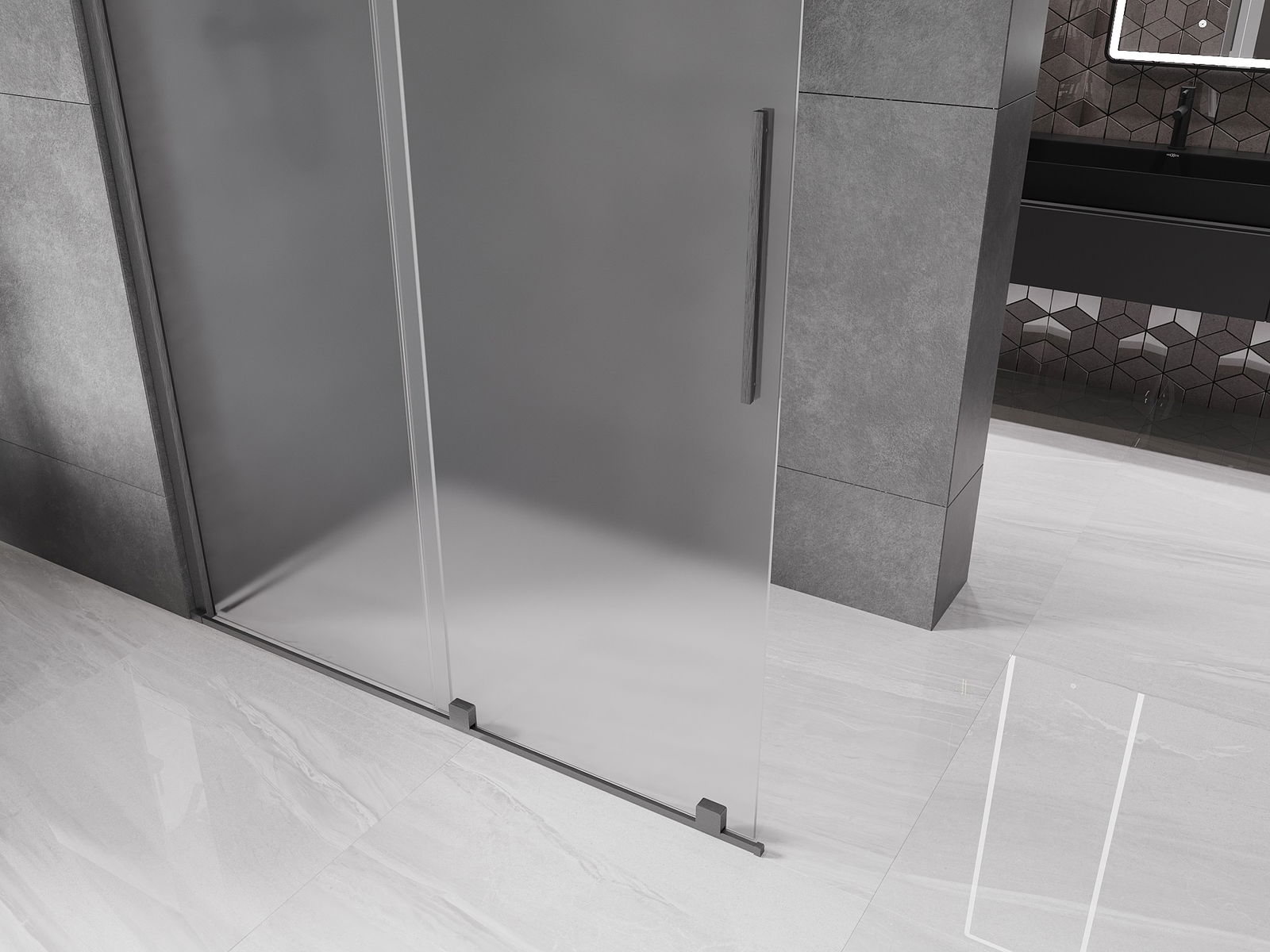 Mexen Velar parede de chuveiro deslizante Walk-in 140 x 200 cm, gelo 8 mm, cinza escovado - 871-140-000-33-66