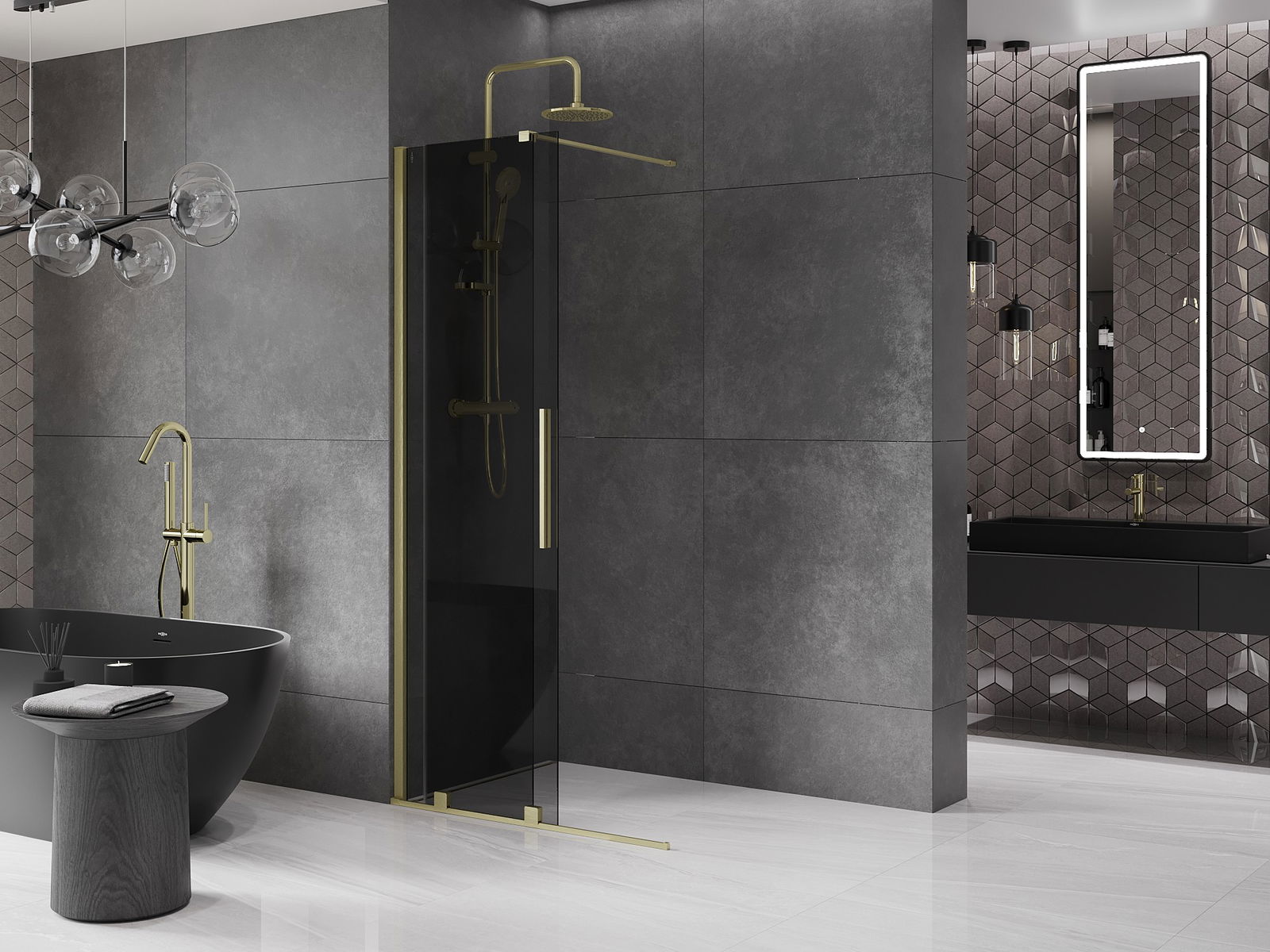 Mexen Velar parede de chuveiro deslizante Walk-in 75 x 200 cm, grafite 8 mm, dourado escovado - 871-075-000-43-55