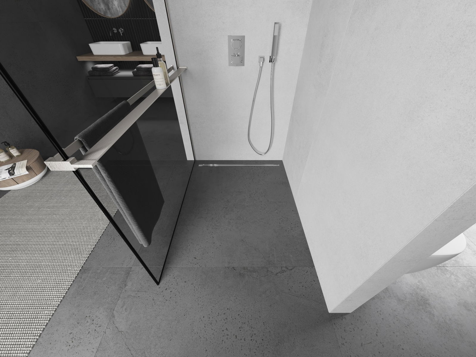 Mexen Kioto+ L parede de duche com prateleira Walk-in 110 x 200 cm, moldura preta, níquel escovado - 800-110-123-97-70