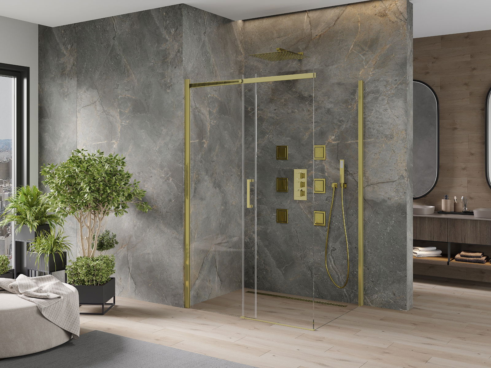 As portas de correr movem-se em guias especiais e não requerem espaço adicional para serem abertas, por isso são ideais para casas de banho menores. Graças aos rolos duplos com corpo de metal, o seu movimento é suave.