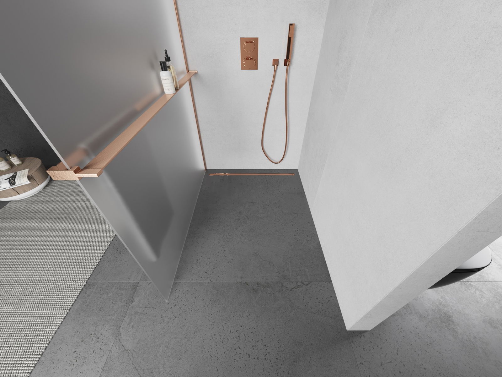 Mexen Kioto+ L parede de chuveiro com prateleira Walk-in 100 x 200 cm, fosco, cobre escovado - 800-100-123-65-30