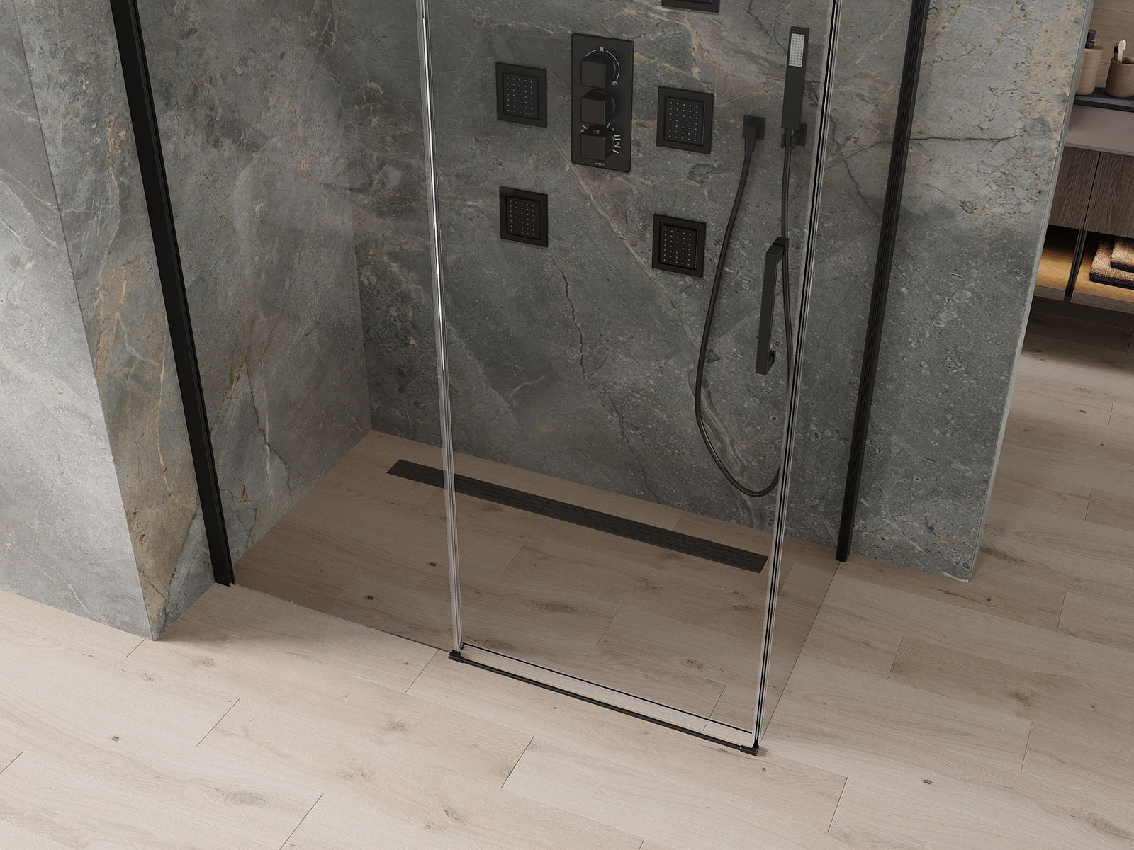 O produto, dependendo das necessidades, pode ser montado tanto no chuveiro como diretamente no chão. O método de montagem universal permite adaptar o produto a diferentes tipos de casas de banho e configurações de espaço.