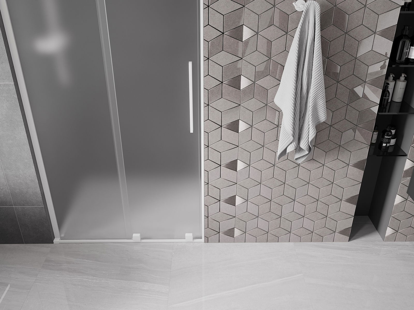 Pega prática e confortável feita de aço inoxidável. A forma moderna, combinada com o acabamento adaptado à cor dos perfis, dá ao conjunto uma aparência moderna e estilosa, realçando a estética de qualquer casa de banho.