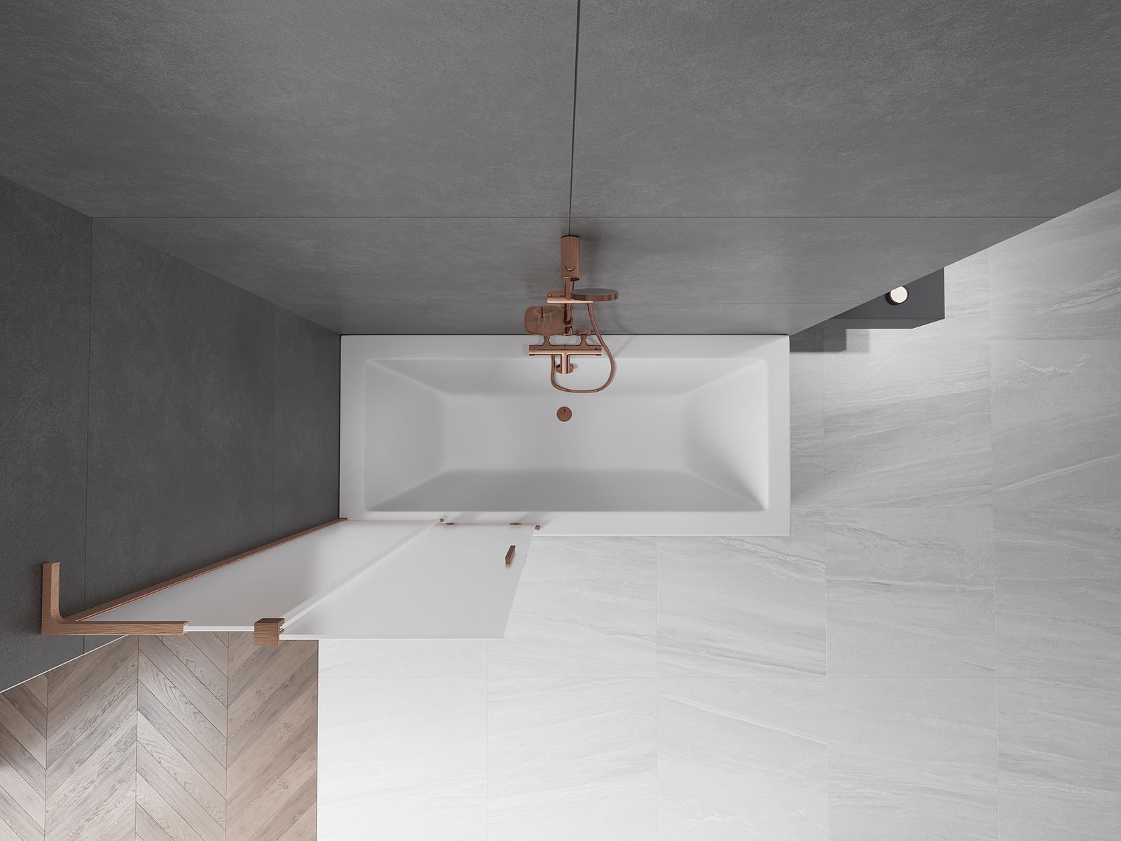 Proteção eficaz contra o derramamento de água durante o banho. O parapeito possui vedações que se ajustam perfeitamente à superfície do vidro e à borda da banheira. Solução funcional que garante segurança e fácil manutenção da limpeza.