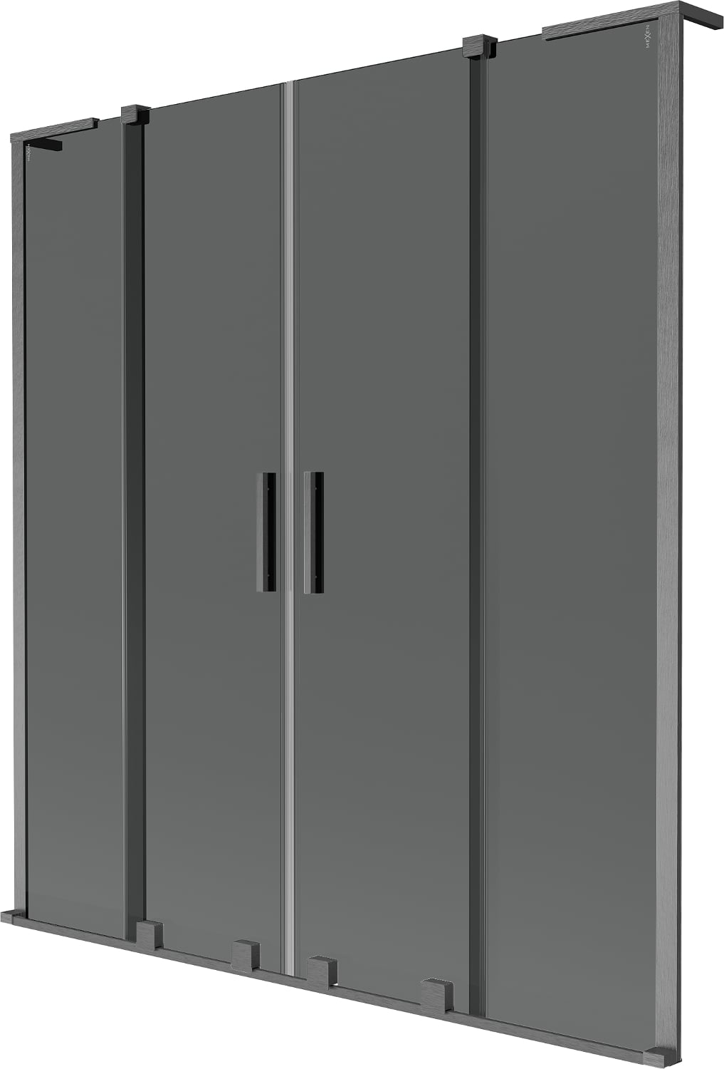 Mexen Velar L Duo de resguardo de duche de 2 painéis deslizantes 160 x 150 cm, grafite, cinza armamento escovado