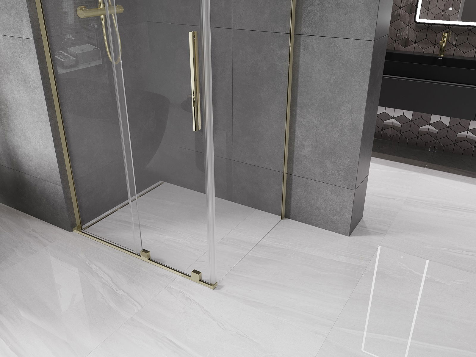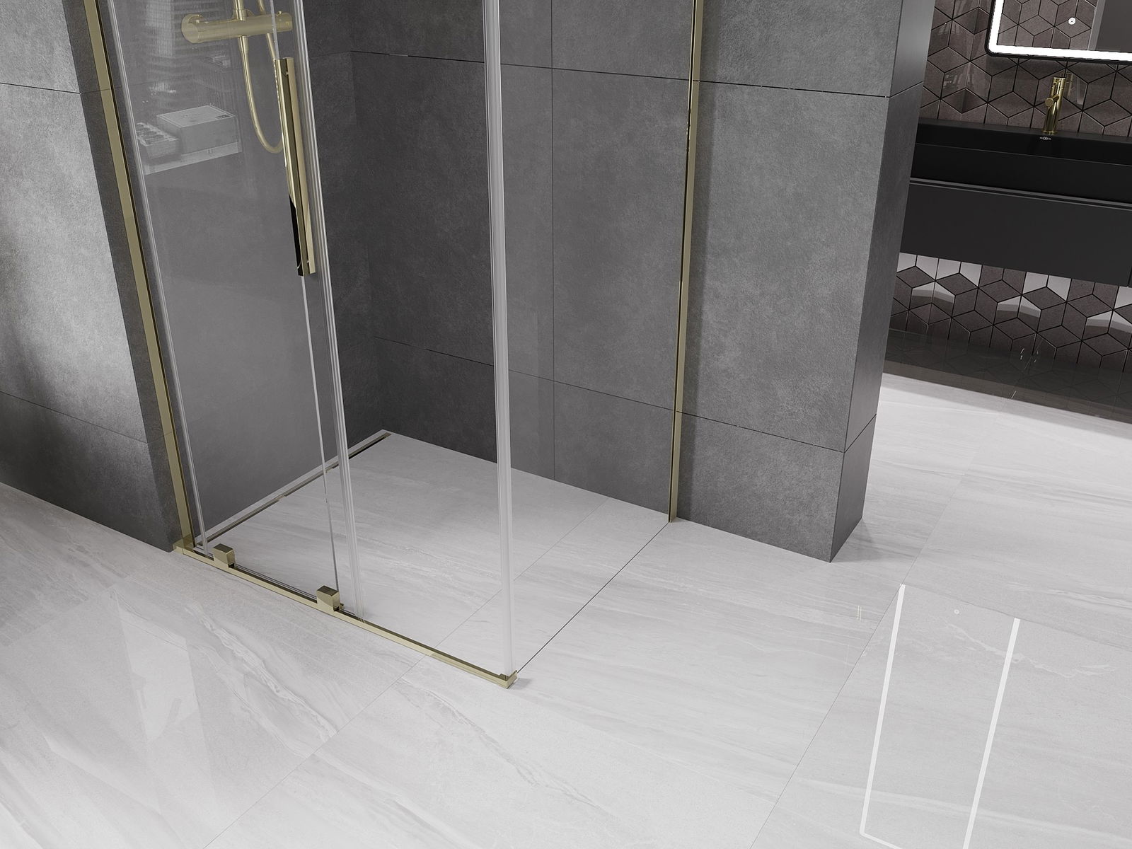 Mexen Velar L cabine de duche deslizante 90 x 75 cm, transparente, dourada - 871-090-075-03-50