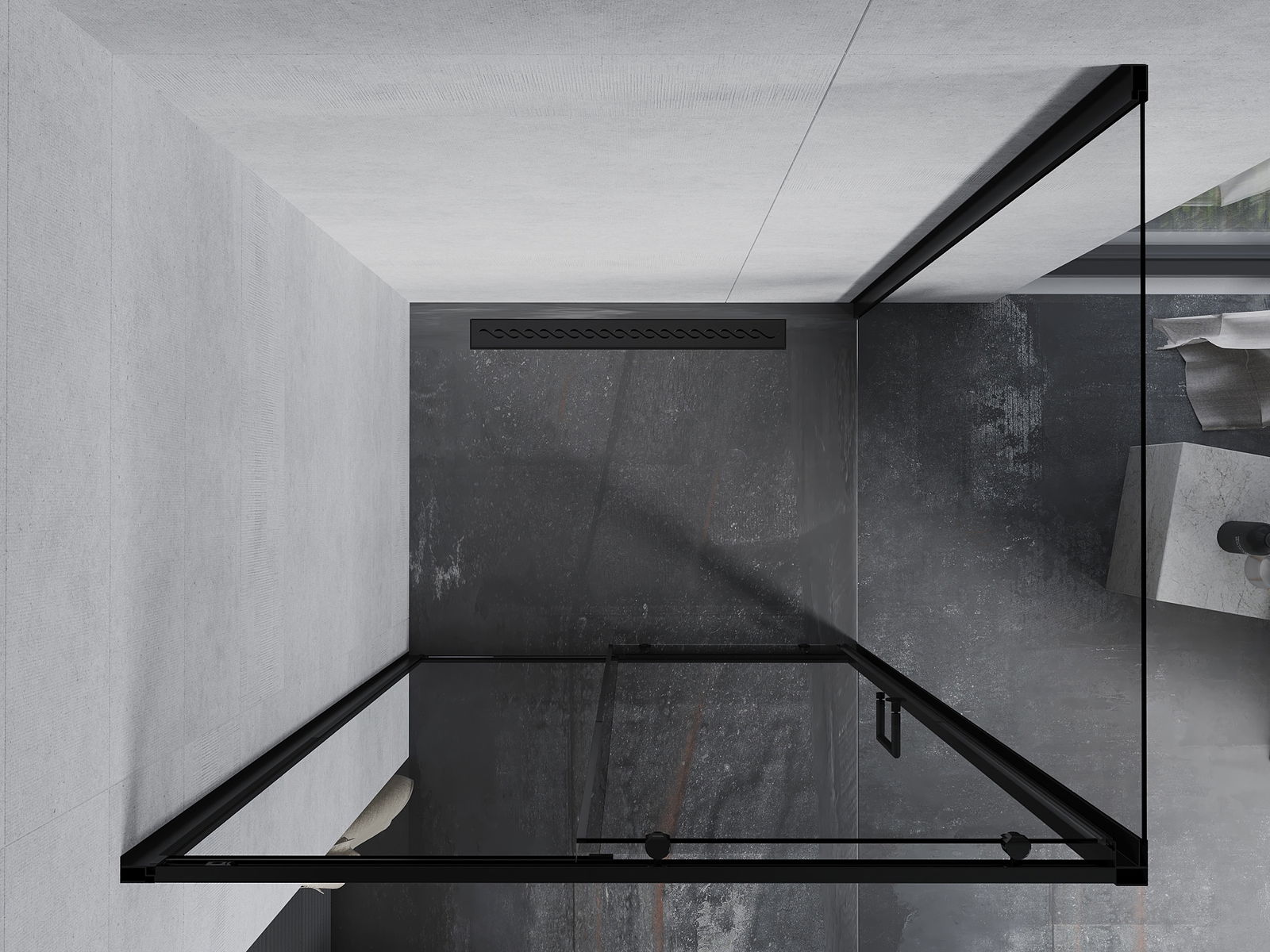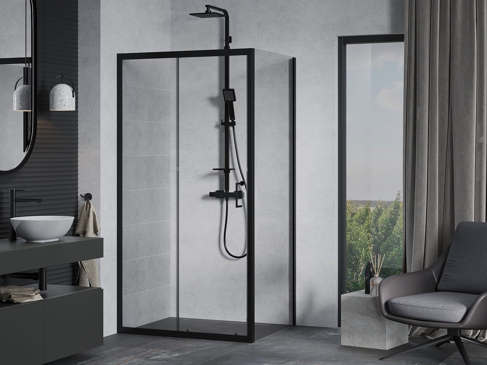 A pega prática e confortável foi feita de metal durável e resistente. A forma moderna combinada com o acabamento ajustado à cor dos perfis confere a todo o conjunto uma aparência moderna e estilosa, realçando a estética de qualquer casa de banho.