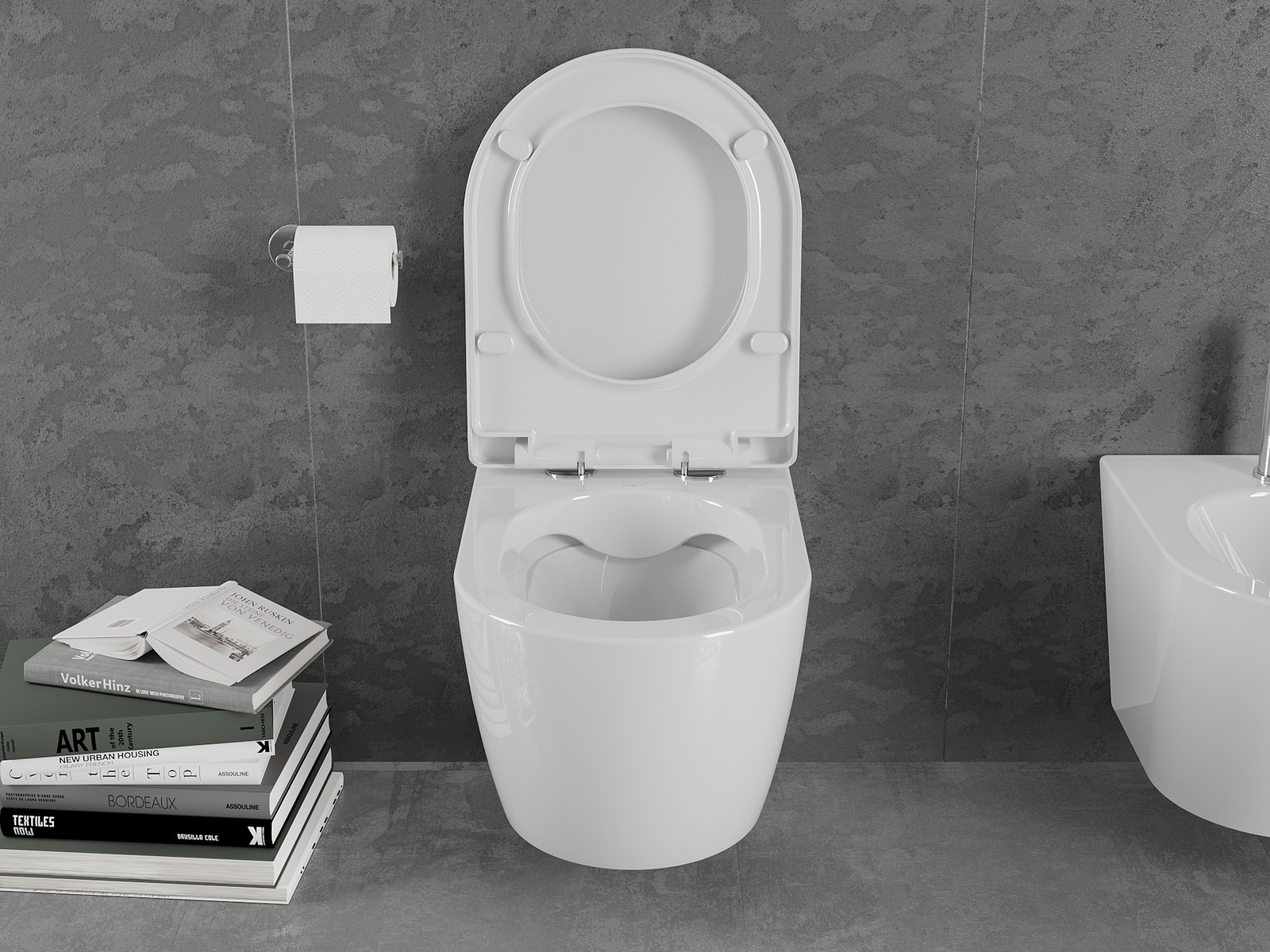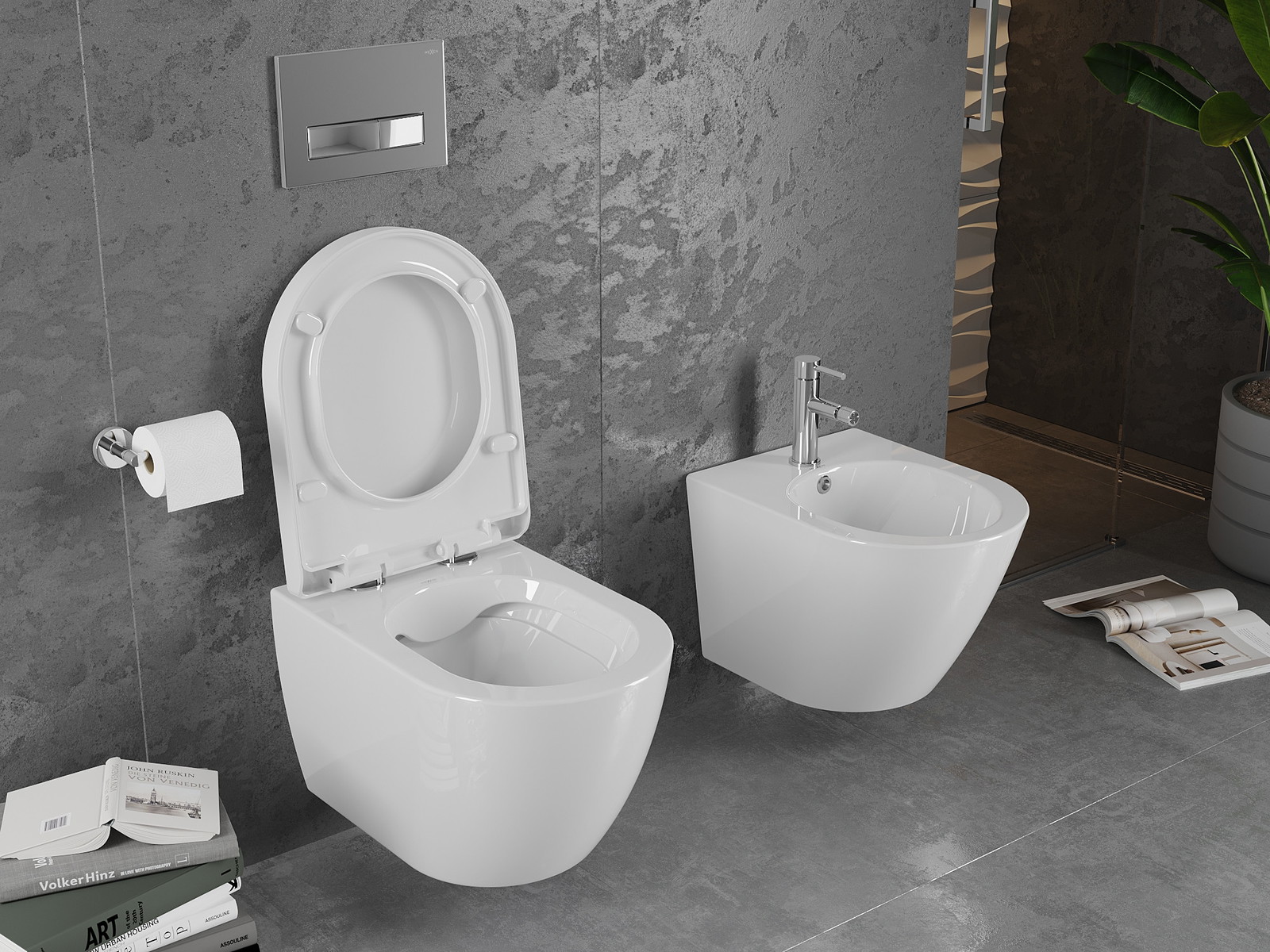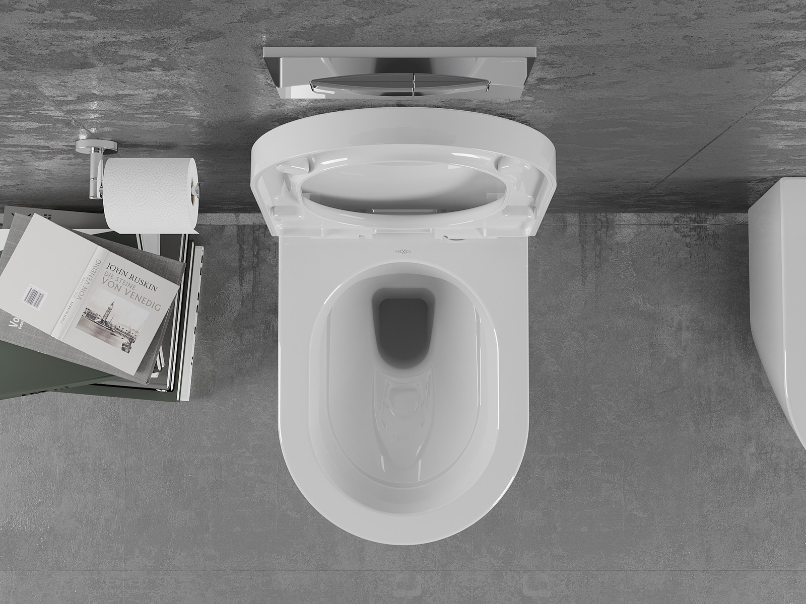 Sistema moderno, no qual todos os elementos de montagem foram ocultados. Não é apenas uma solução estética, mas também muito prática. Facilita a manutenção da casa de banho limpa e assegura um aspeto arrumado.