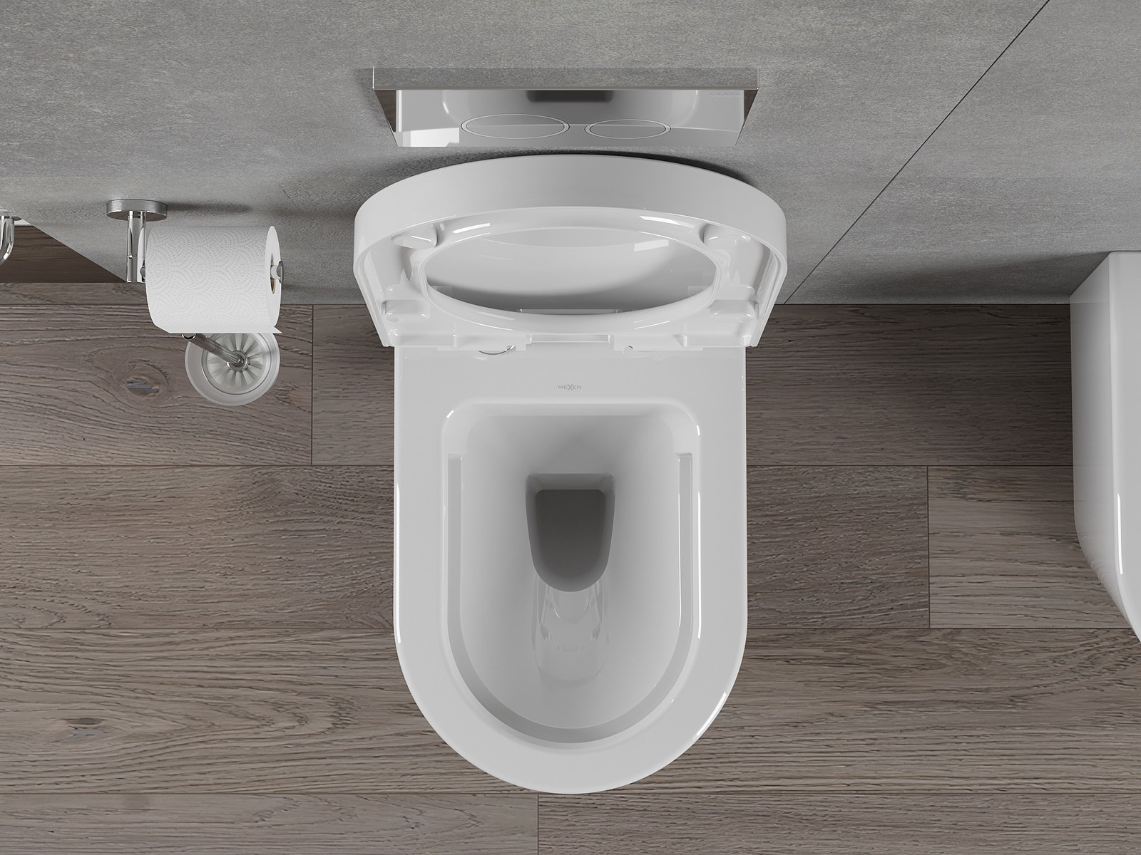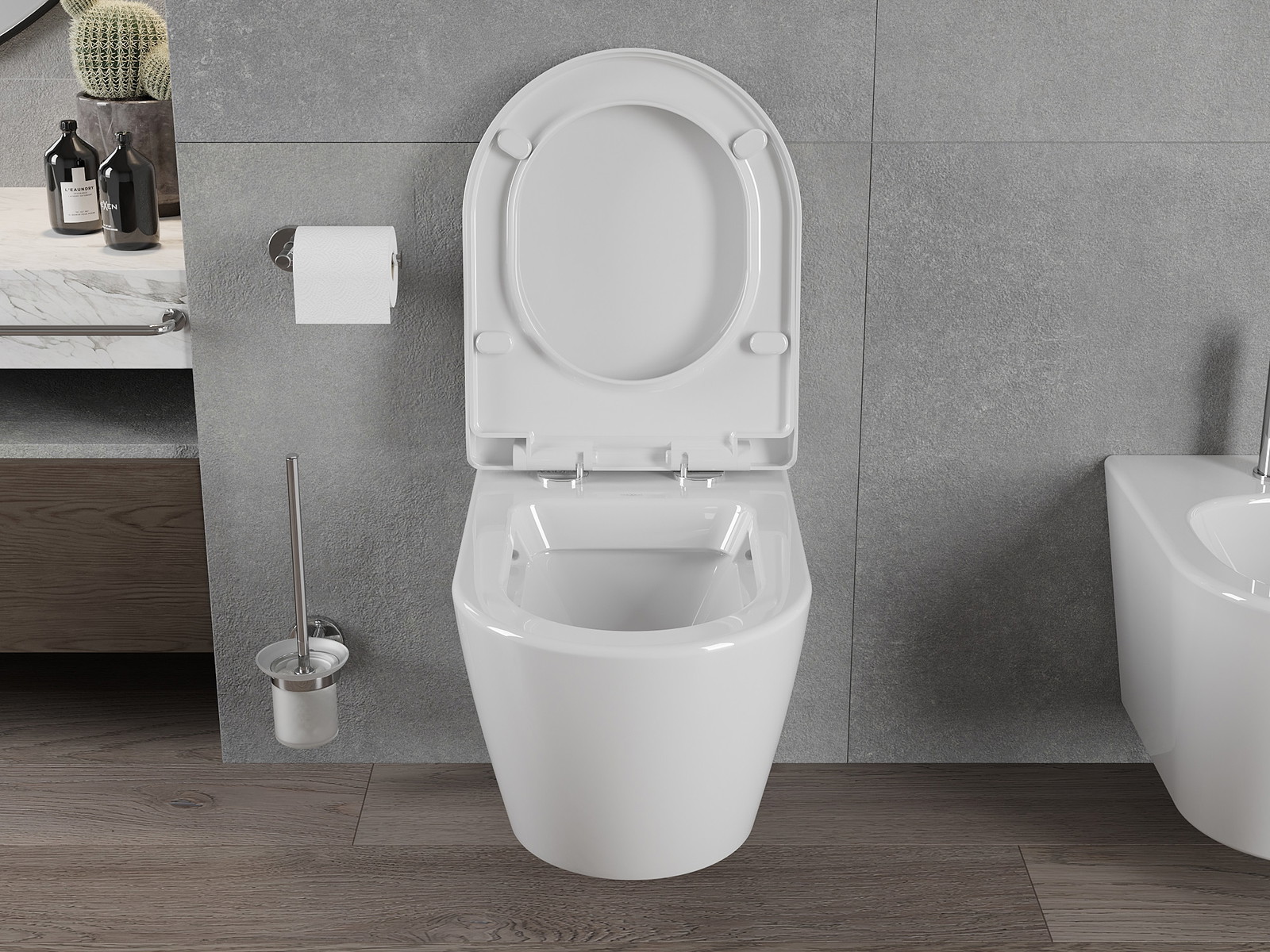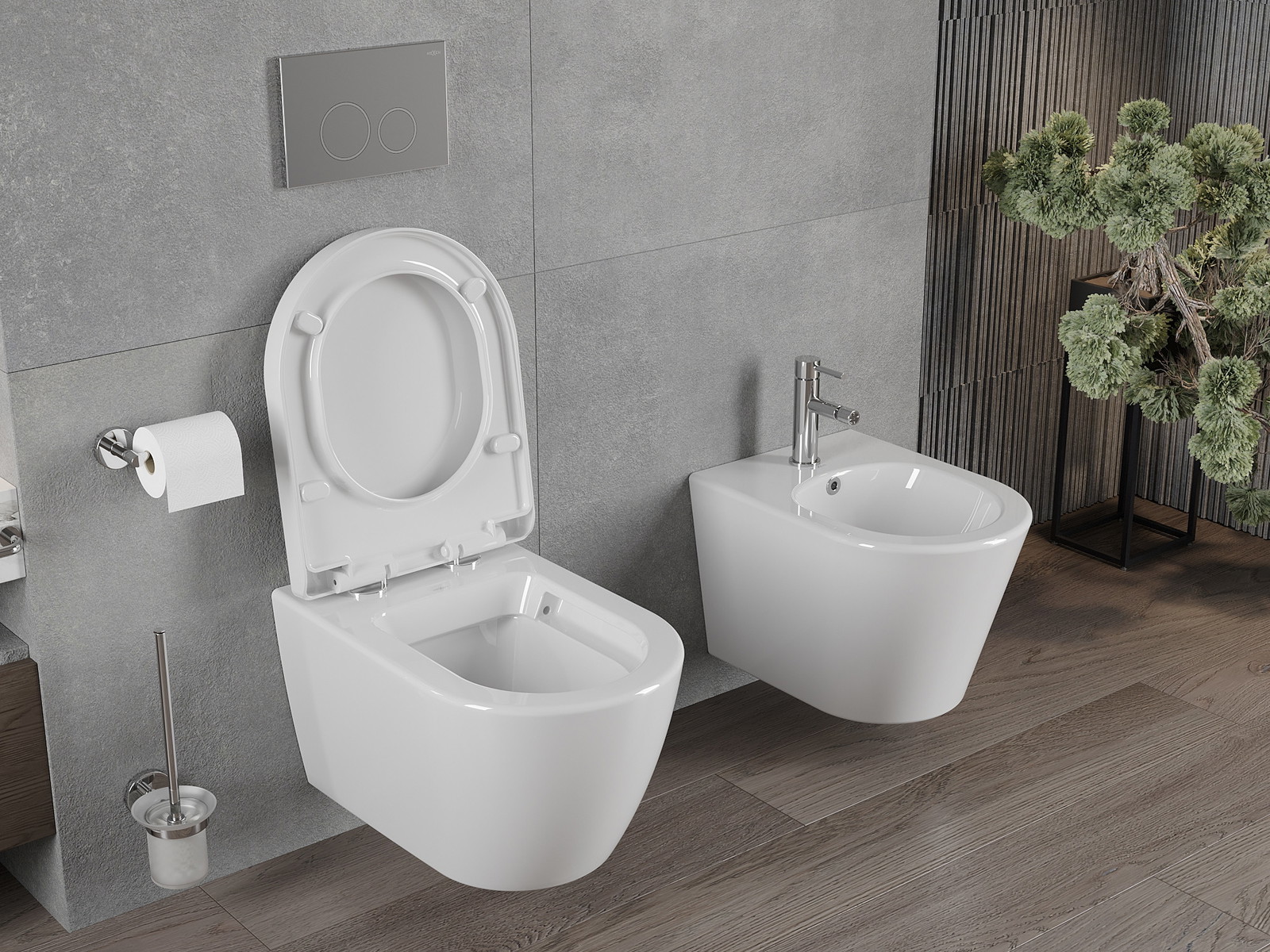 Sistema moderno, no qual todos os elementos de montagem foram ocultados. Não é apenas uma solução estética, mas também muito prática. Facilita a manutenção da casa de banho limpa e assegura um aspeto arrumado.