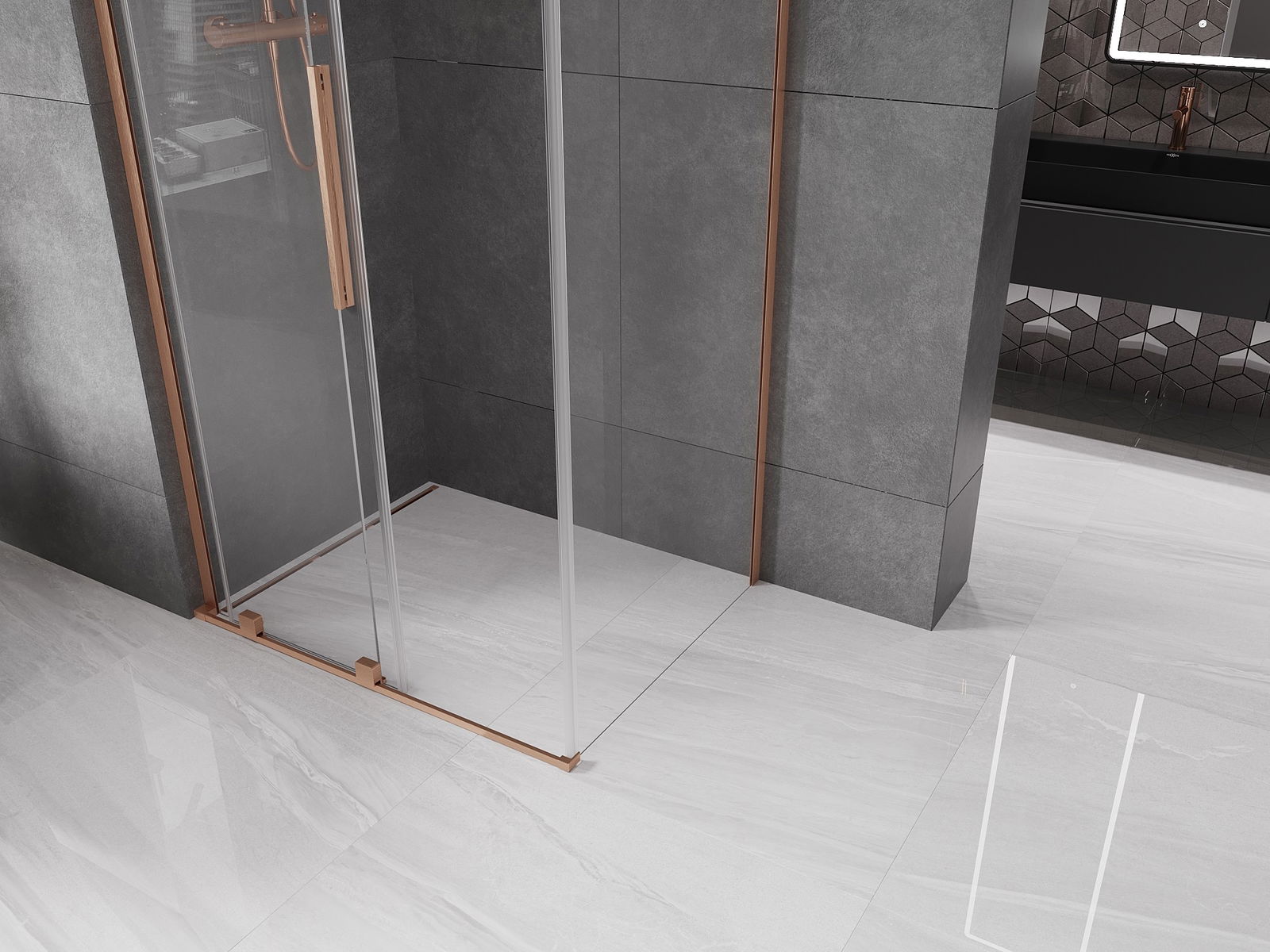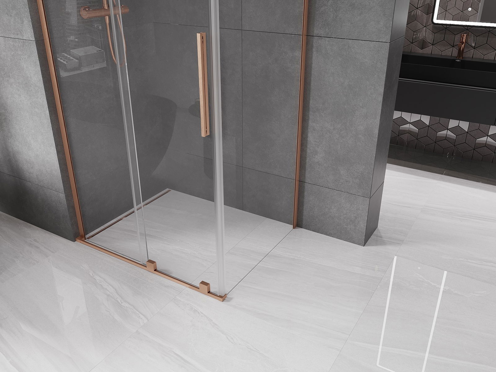 Mexen Velar L cabine de duche deslizante 100 x 75 cm, transparente, cobre escovado - 871-100-075-03-65