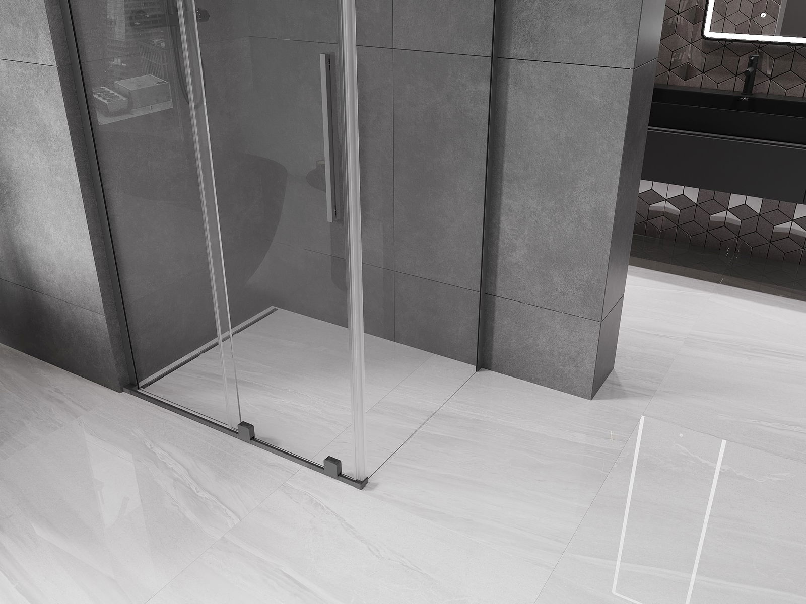 Mexen Velar L cabine de duche de correr 100 x 80 cm, transparente, metal de arma - 871-100-080-03-95